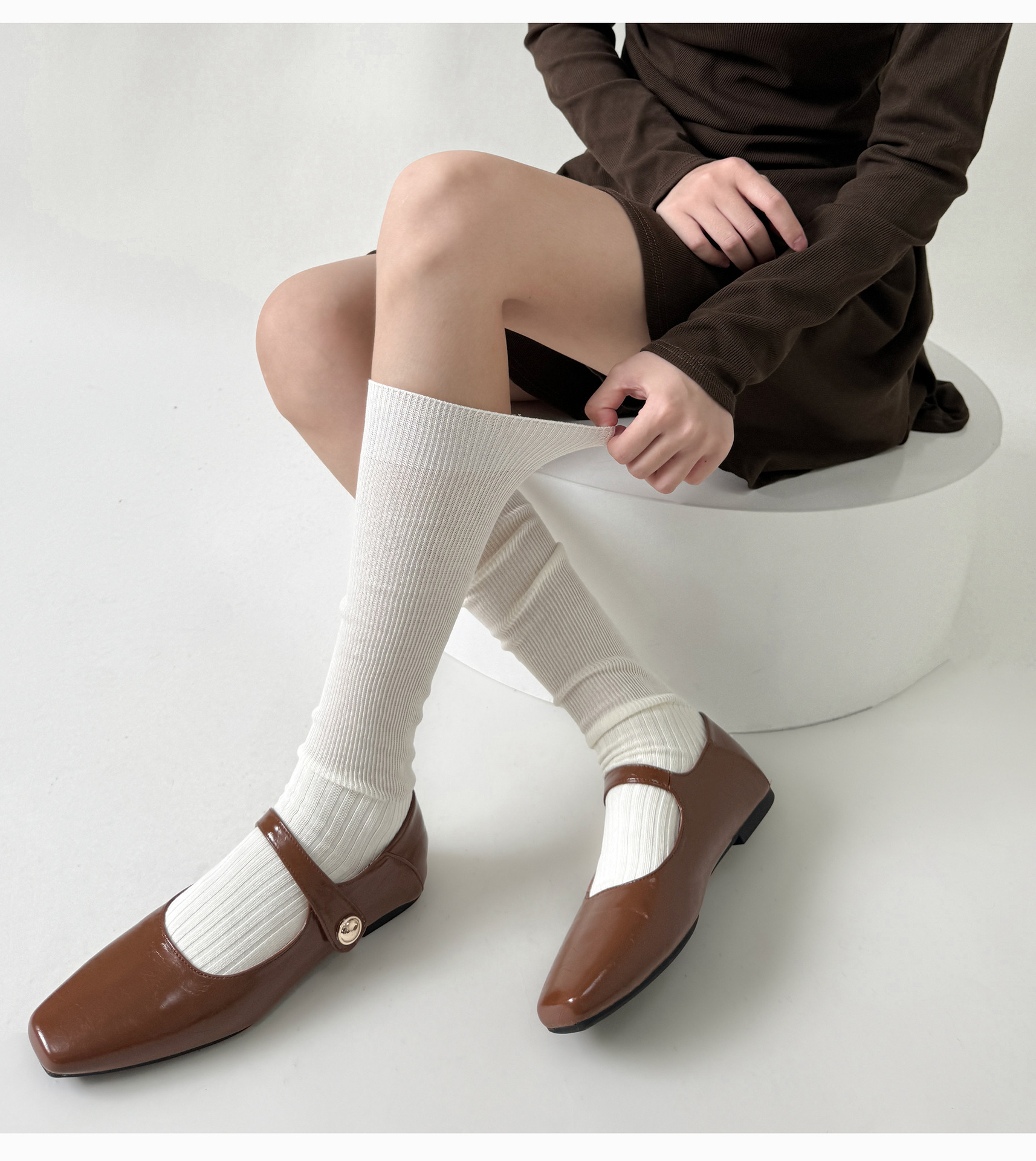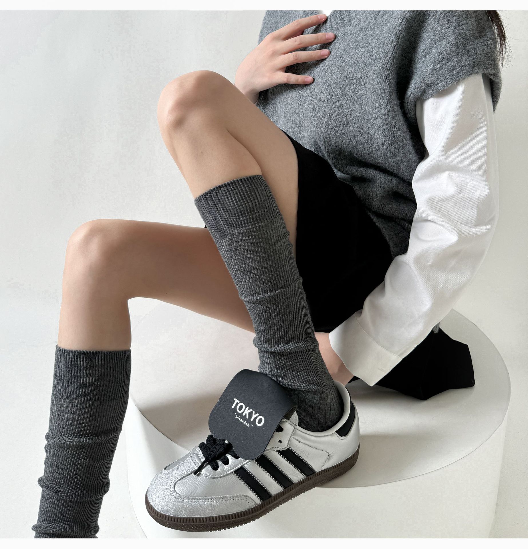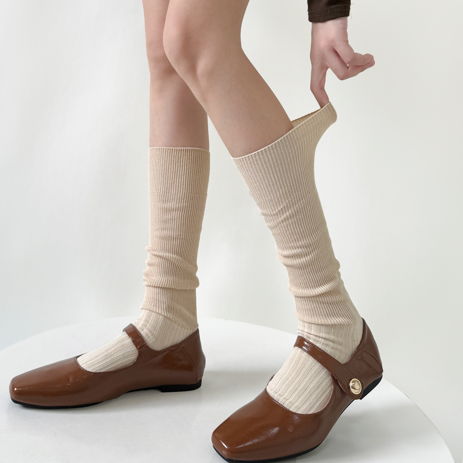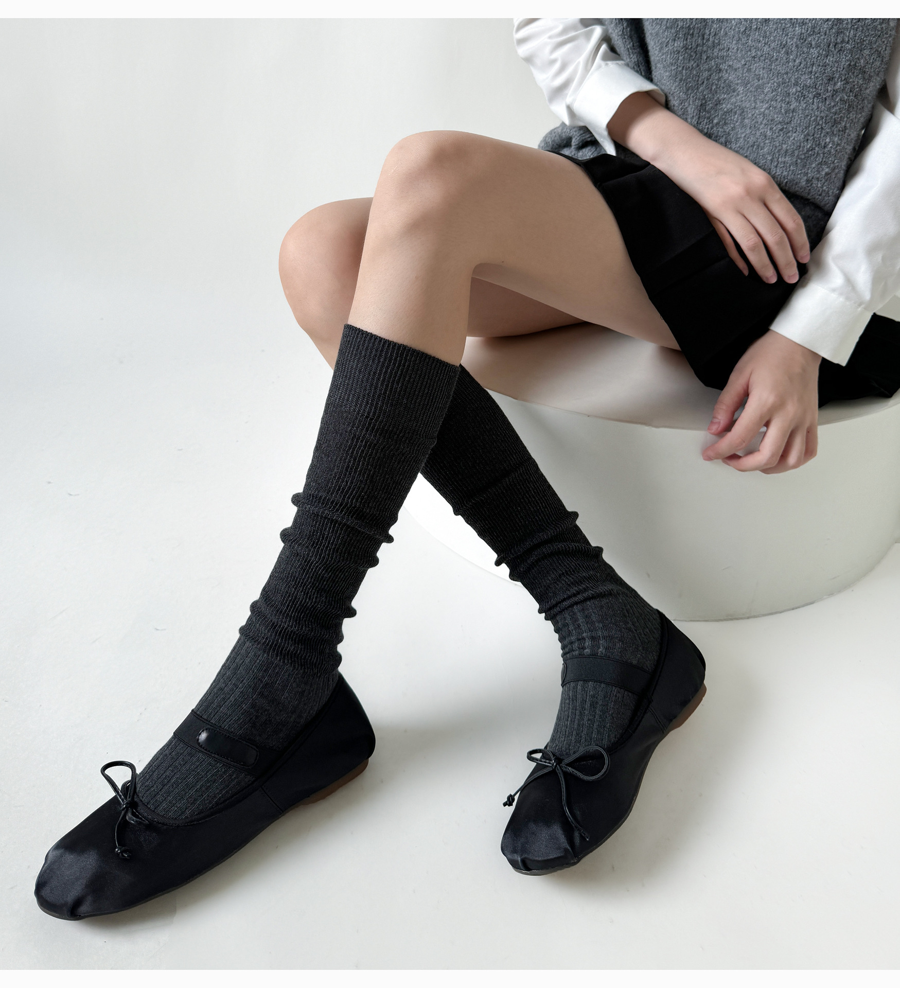 가을 스티칭 힙 스타킹 여성의 단색 간단한 올 매치 그레이 니트 코튼 스타킹 봄과 가을 미드 스타킹 밀크 화이트스토어 가기