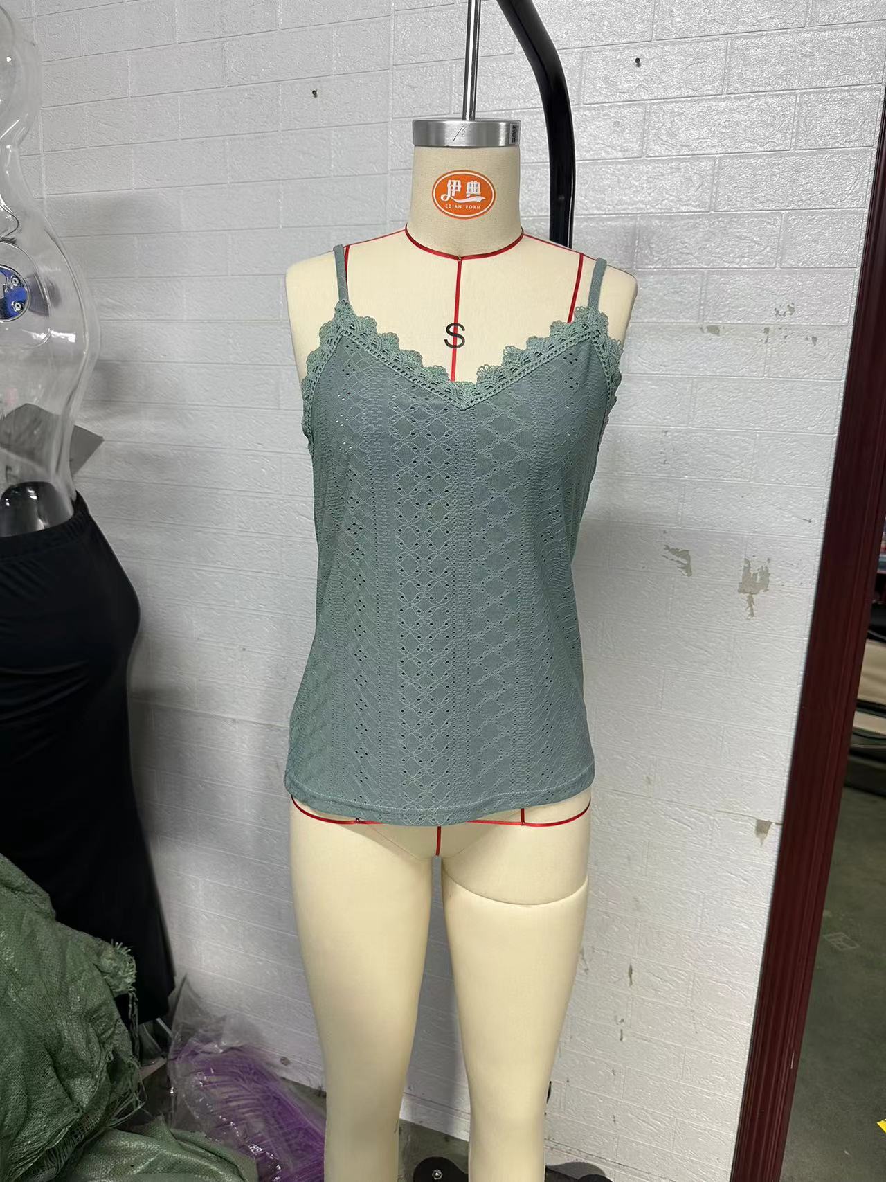 새로운 유럽과 미국의 국경 간 여성 AliExpress 아마존 독립 스테이션 솔리드 컬러 수용성 레이스 탑 레이스 슬링스토어 가기