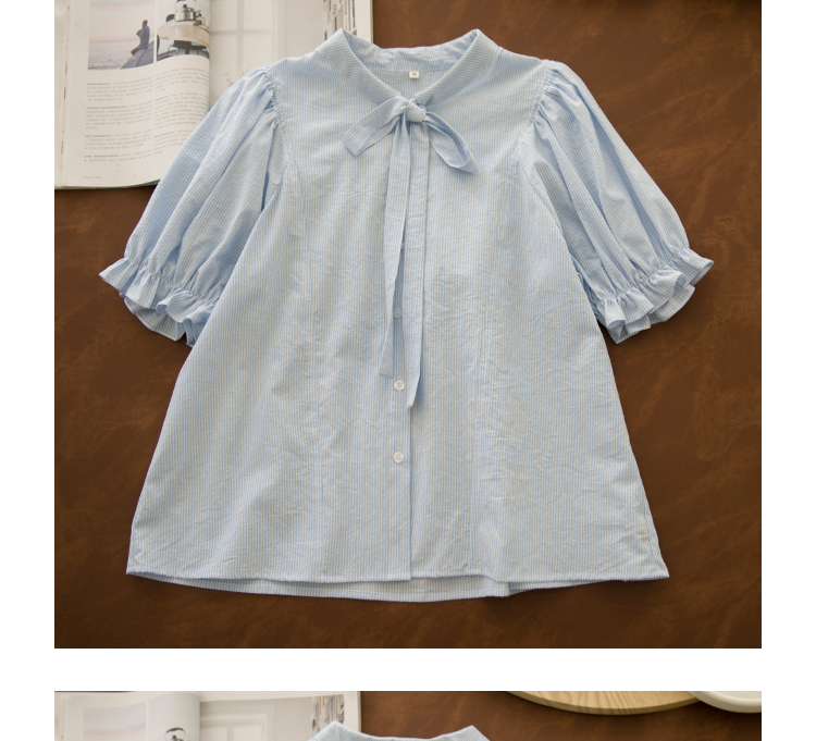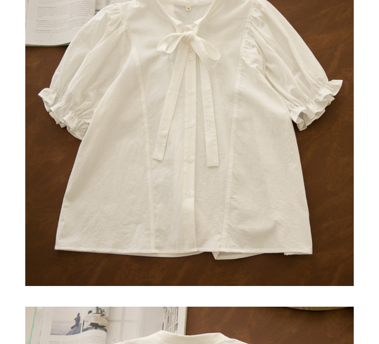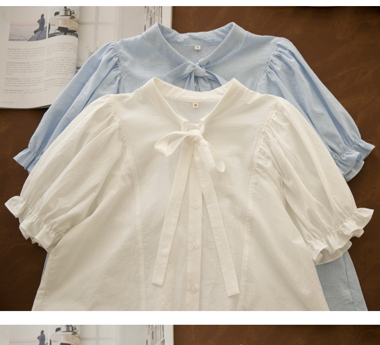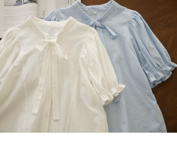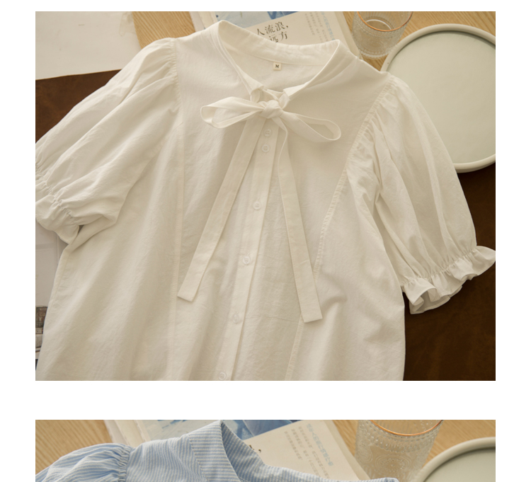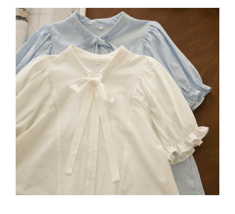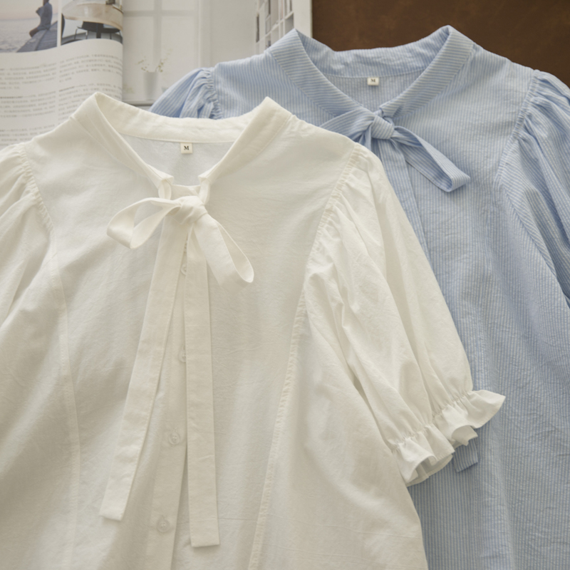 한국 스타일 레이스 업 반팔 셔츠 여성 여름 프랑스 스타일 레트로 스타일 세련된 셔츠 통근스토어 가기