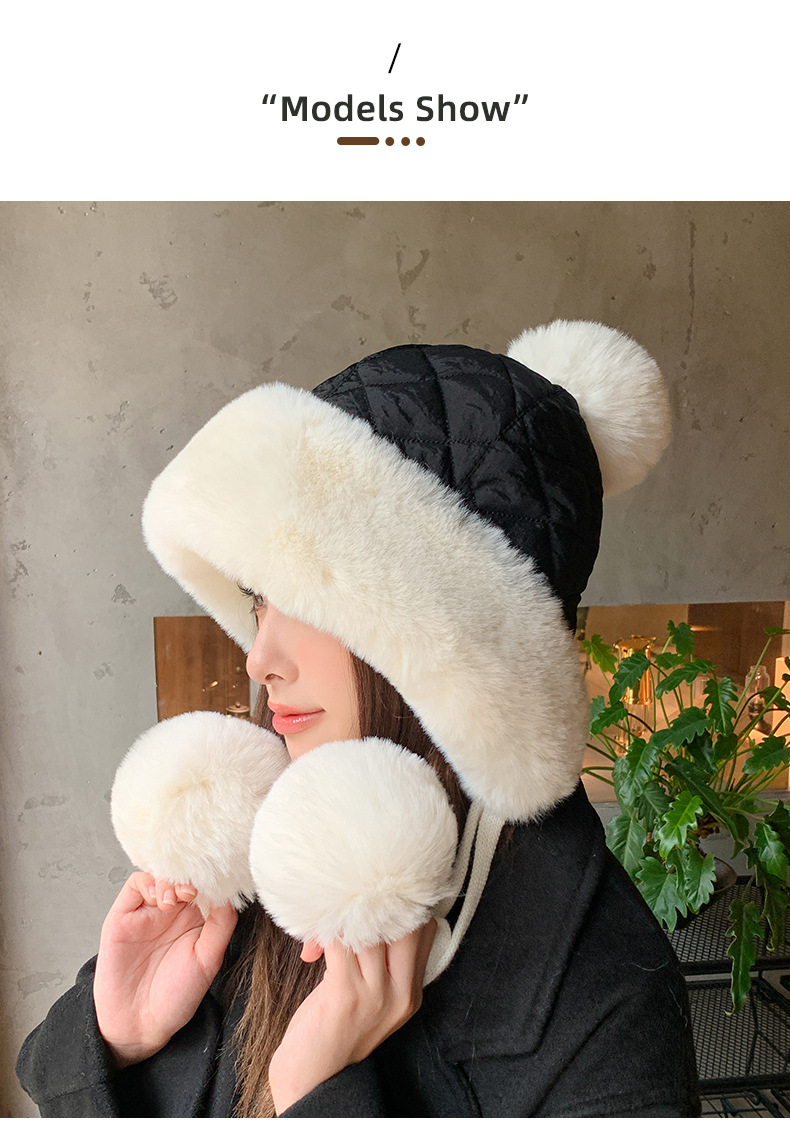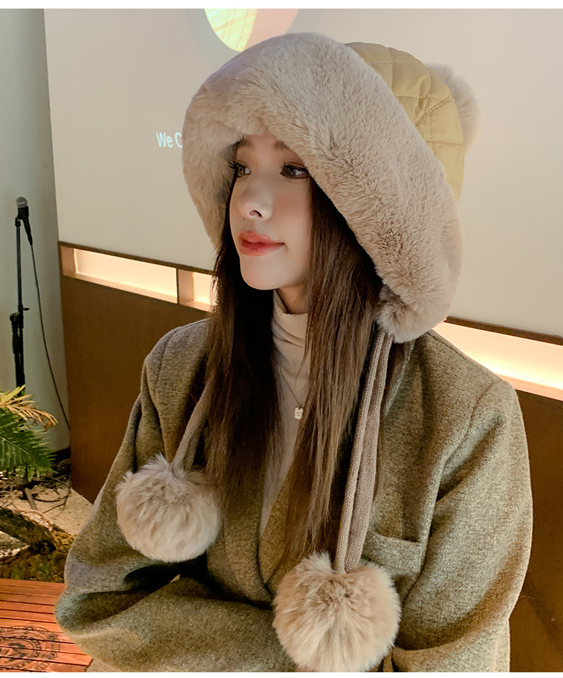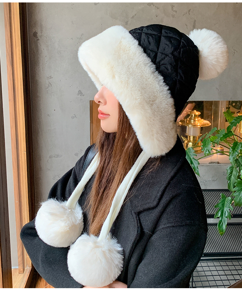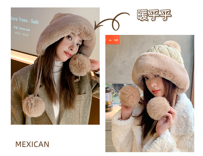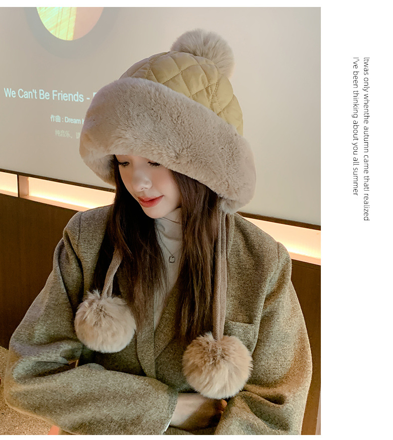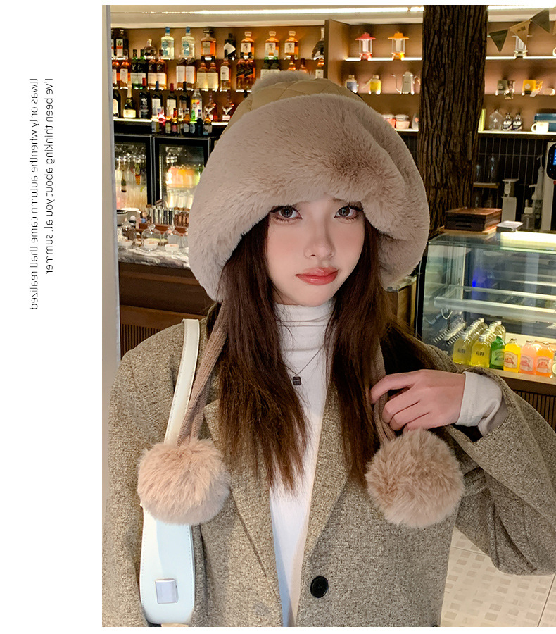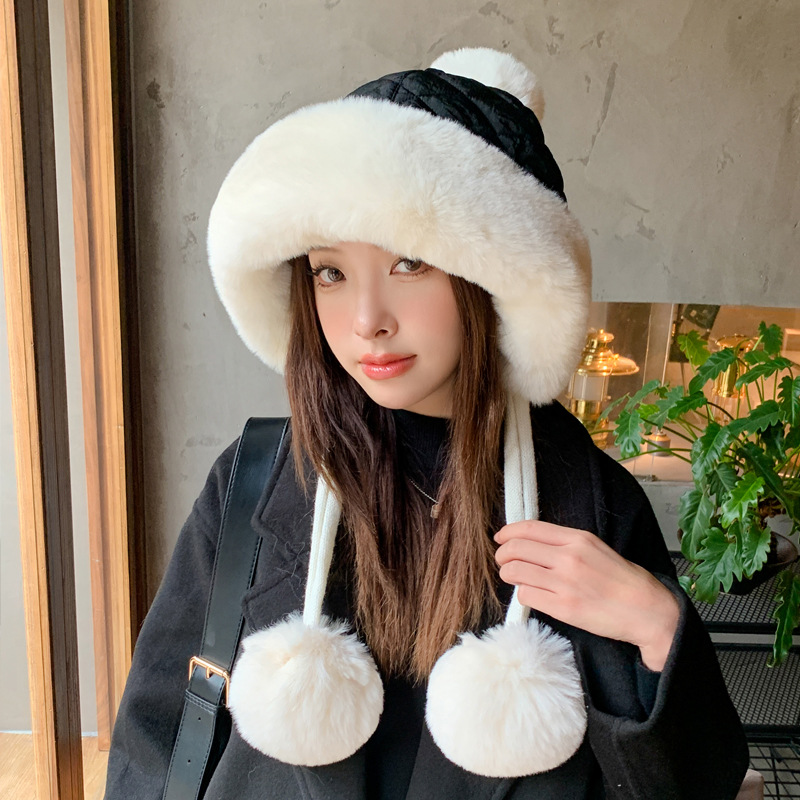 한국 스타일 가을과 겨울 레이 펑 모자 여자 유행 올매치 귀여운 모피 공 귀 모자 냉증 두꺼운 봉제 모자 트렌디 풀오버 모자