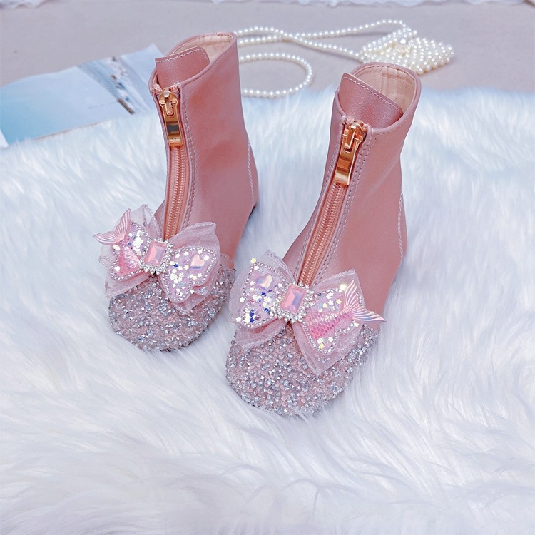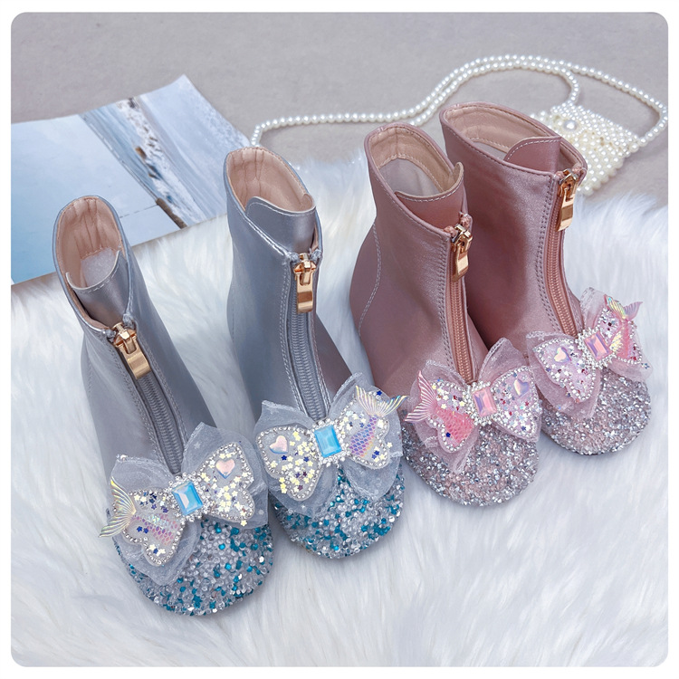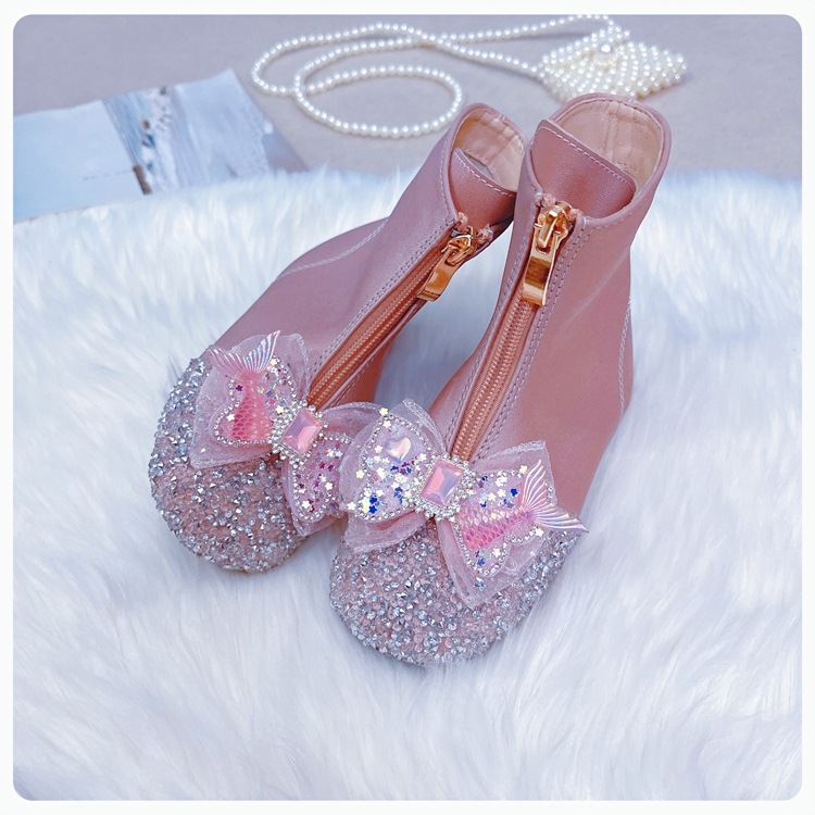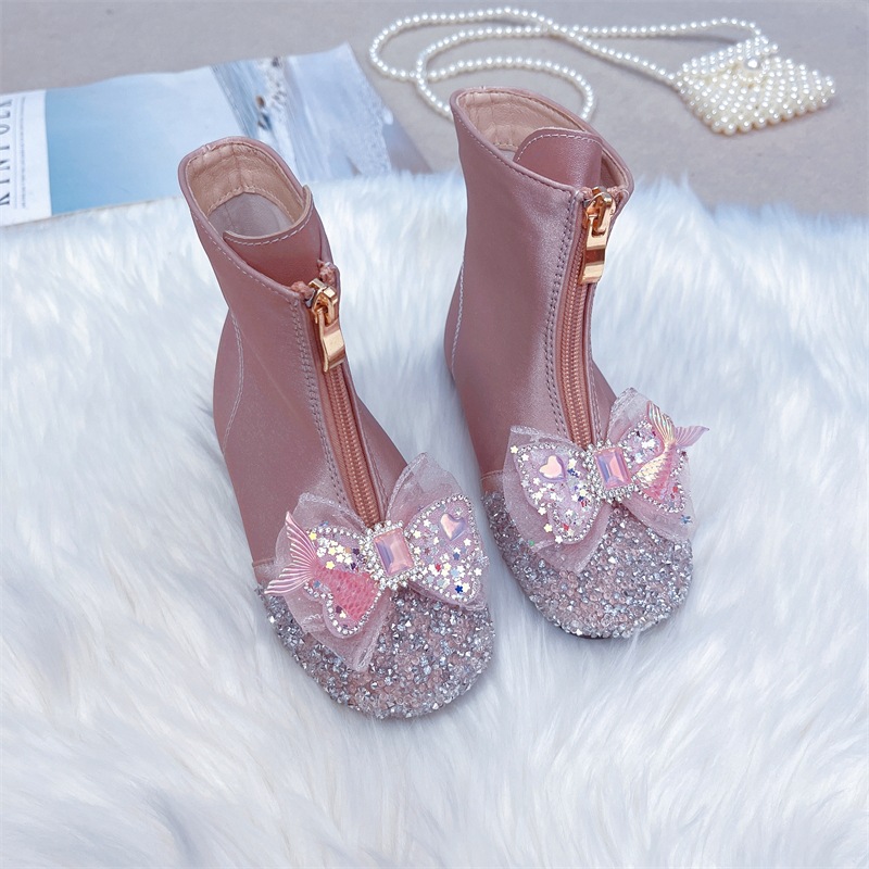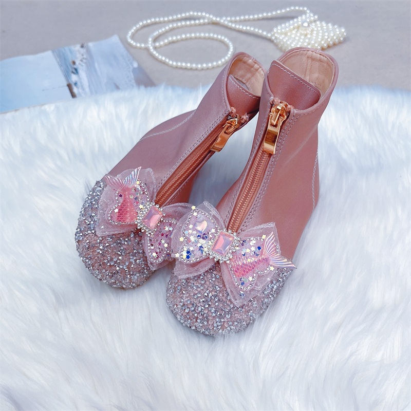 베이비 프린세스 부츠 겨울 새 어린이 발목 부츠 기모 여성용 코튼 부츠 겨울 가죽 부츠 Martins 부츠 소녀 부츠