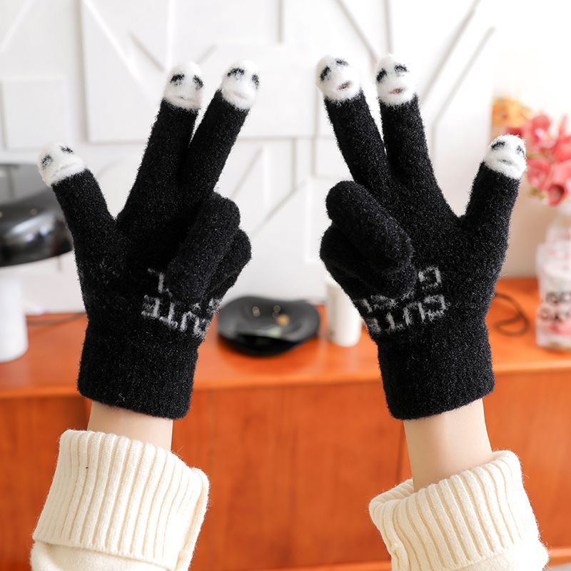 가을 겨울 여성용 니트 장갑, 따뜻하고 방한 기능이 있는 벨벳 장갑, 학생용 세 손가락 노출형 글쓰기 및 터치스크린 디자인스토어 가기