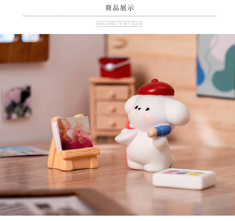 마이크로 풍경 장식품 창조적 인 귀여운 그림 강아지 인형 수공예 데스크탑 자동차 수지 작은 장식품스토어 가기