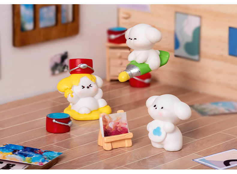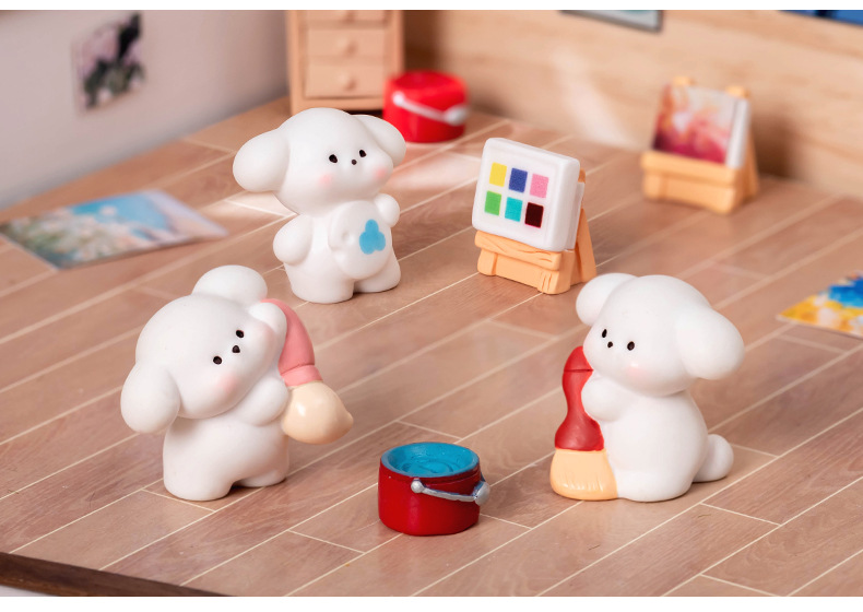 마이크로 풍경 장식품 창조적 인 귀여운 그림 강아지 인형 수공예 데스크탑 자동차 수지 작은 장식품