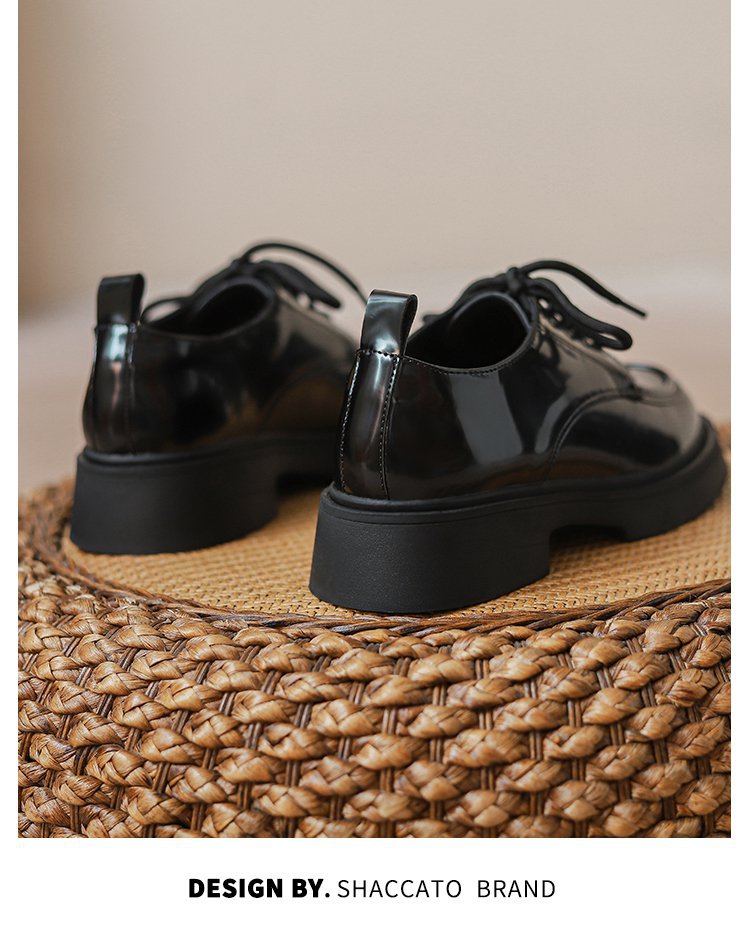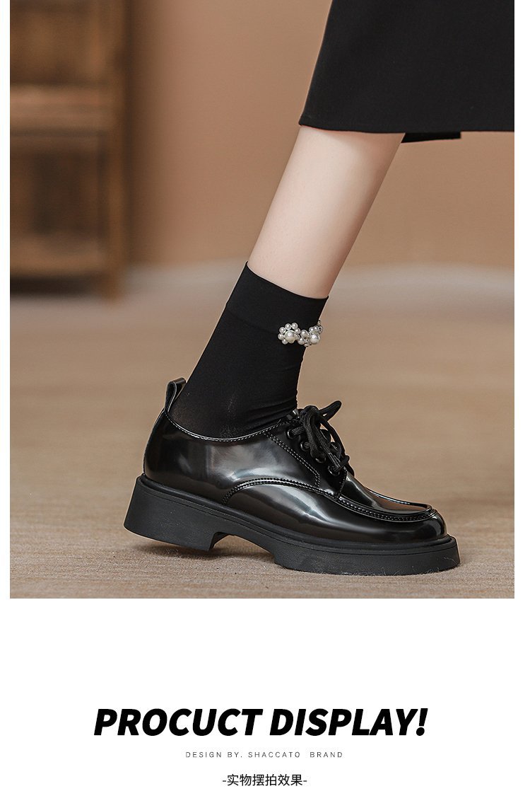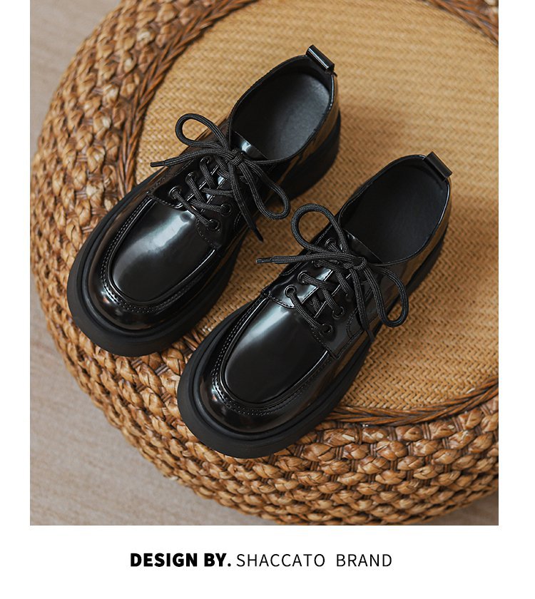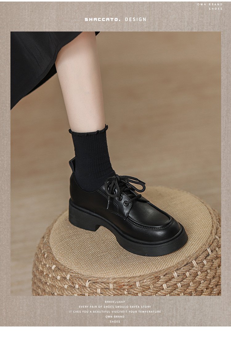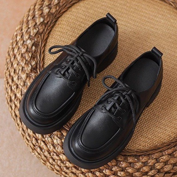 2024 새로운 봄과 가을 정품 가죽 신발 여성 영국 스타일 올 매치 두꺼운 밑창 JK 레이스 업 신발 플랫 로퍼