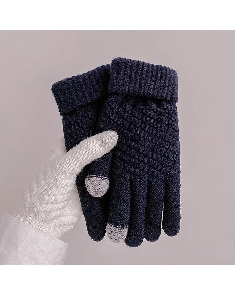 겨울 학생 양모 니트 따뜻한 장갑 두껍게 기모 한랭 라이딩 자카드 핑거 장갑 터치스크린