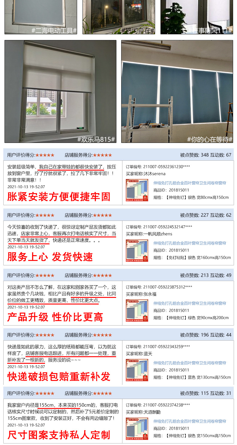 P66D 롤러 셔터 블라인드 홀프리 설치 그늘 주방 욕실 리프팅 압연 방수스토어 가기