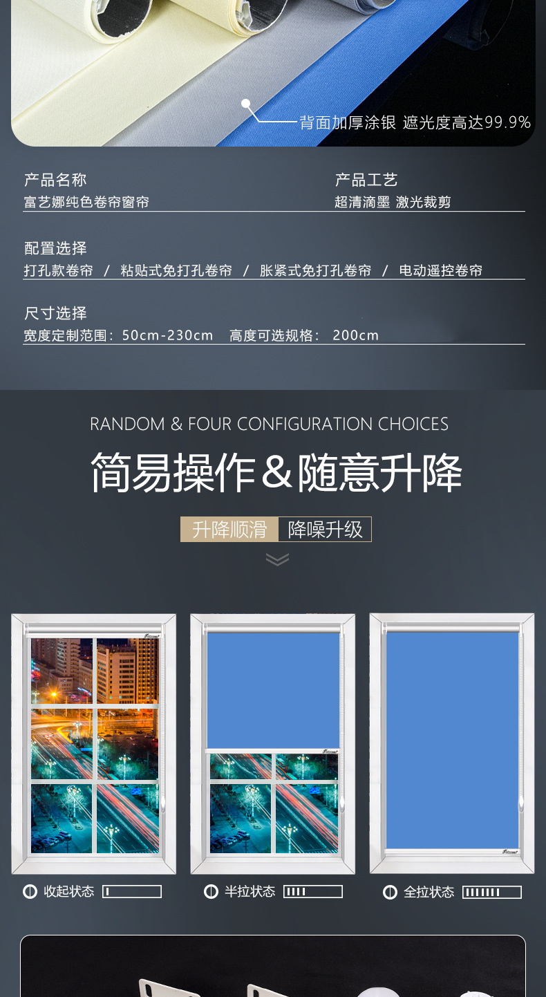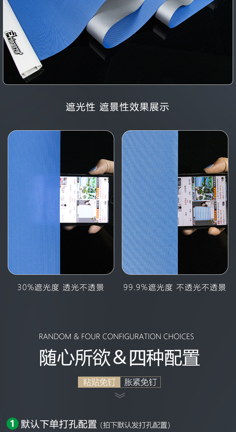 P66D 롤러 셔터 블라인드 홀프리 설치 그늘 주방 욕실 리프팅 압연 방수