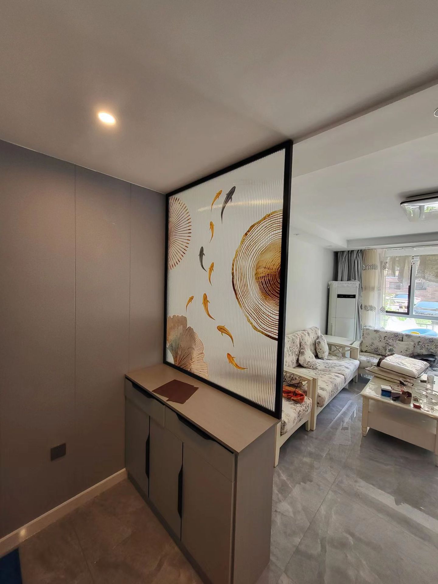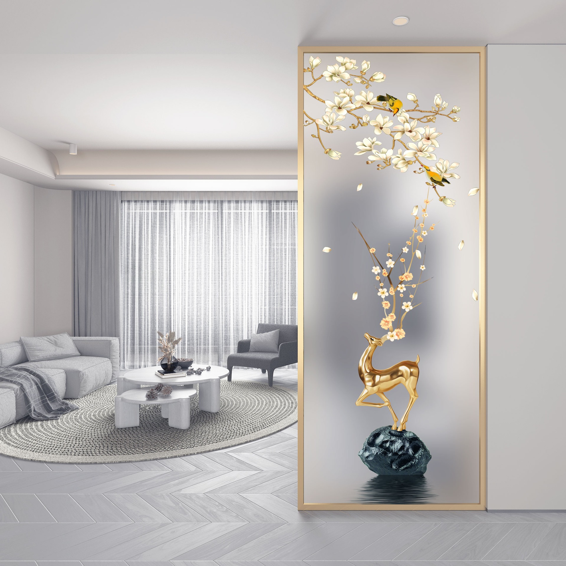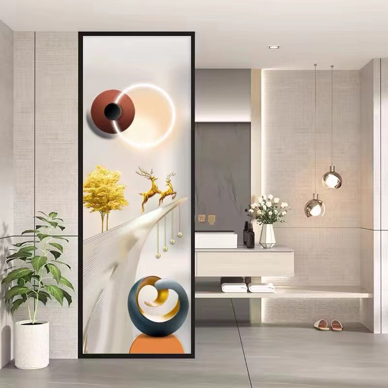 현대 간단한 예술 유리 스크린 거실 입구 욕실 대피소 빛 럭셔리 철 파티션 장식 벽스토어 가기