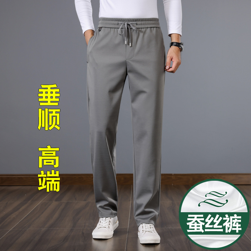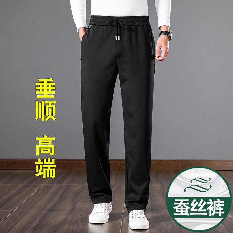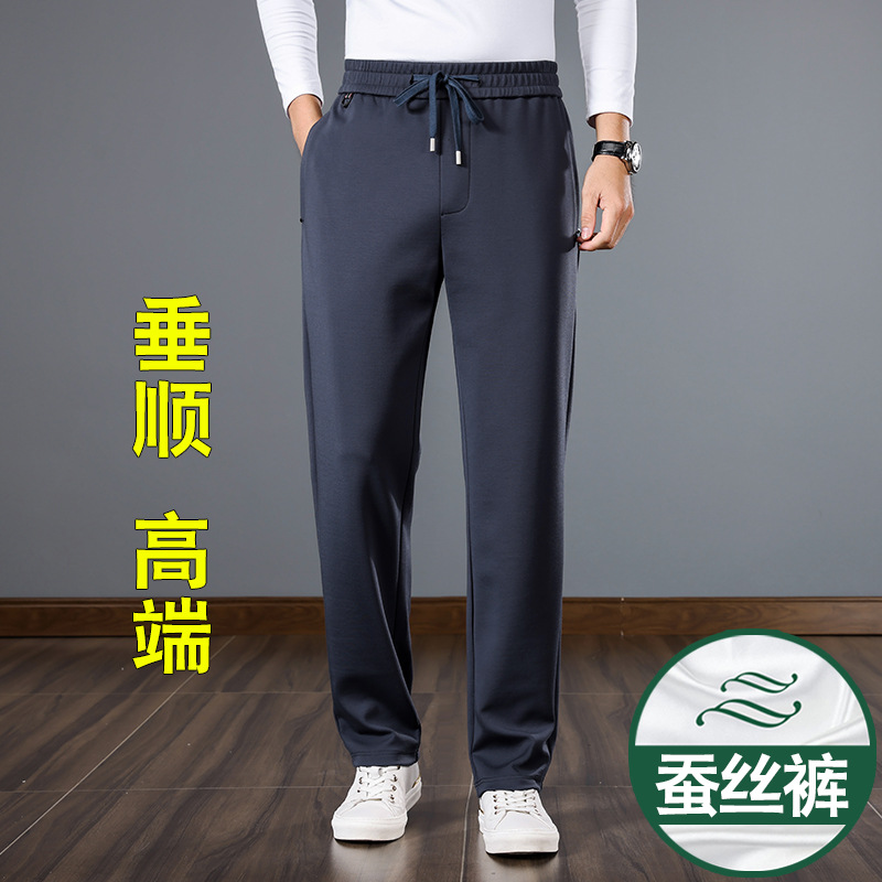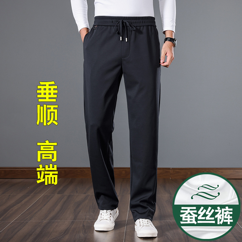 새로운 뽕나무 실크 남자 바지 봄과 가을 두꺼운 캐주얼 바지 느슨한 스트레이트 스포츠 남자 두꺼운 바지스토어 가기