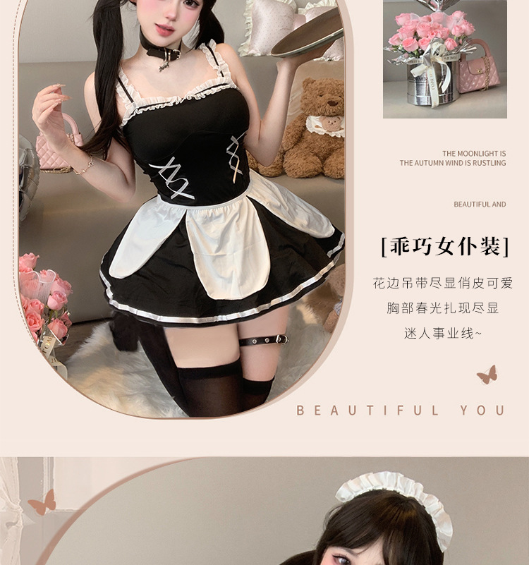 섹시한 에로틱 란제리, 하녀복, 순수한 욕망, 작은 가슴, 유니폼 드레스, 하녀복 세트, 유혹적인 잠옷, 열정 2720스토어 가기