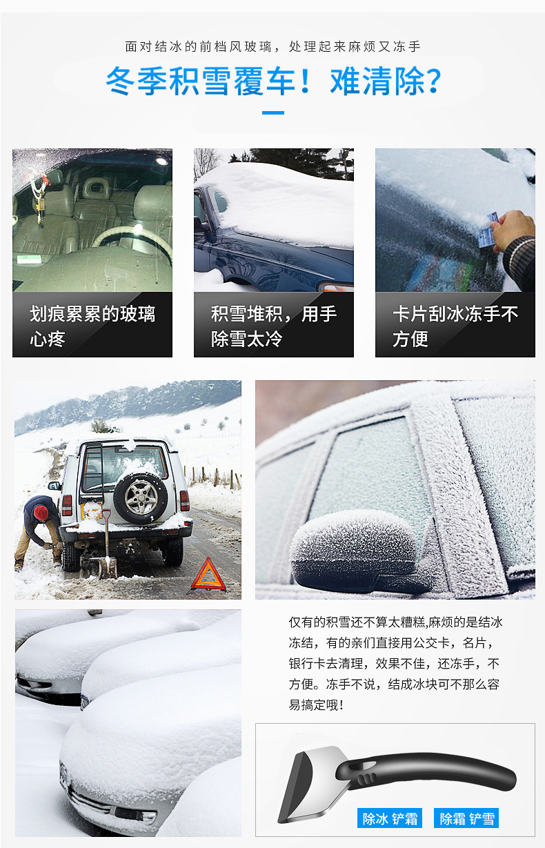 1.紧握冰霜铲铲柄,使铲头紧贴挡风玻璃;