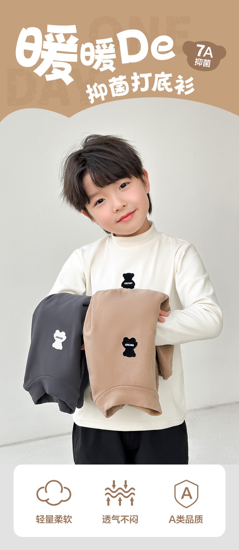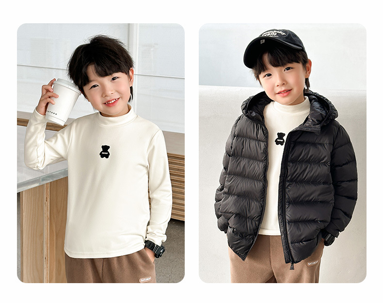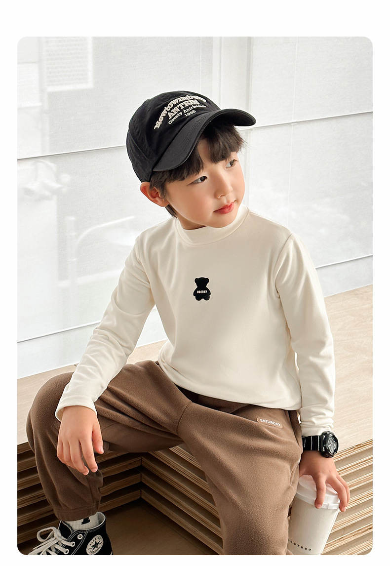 [7A 항균] AINI 어린이 높은 목 긴 소매 티셔츠 곰 인쇄베이스 어린이 봄과 가을