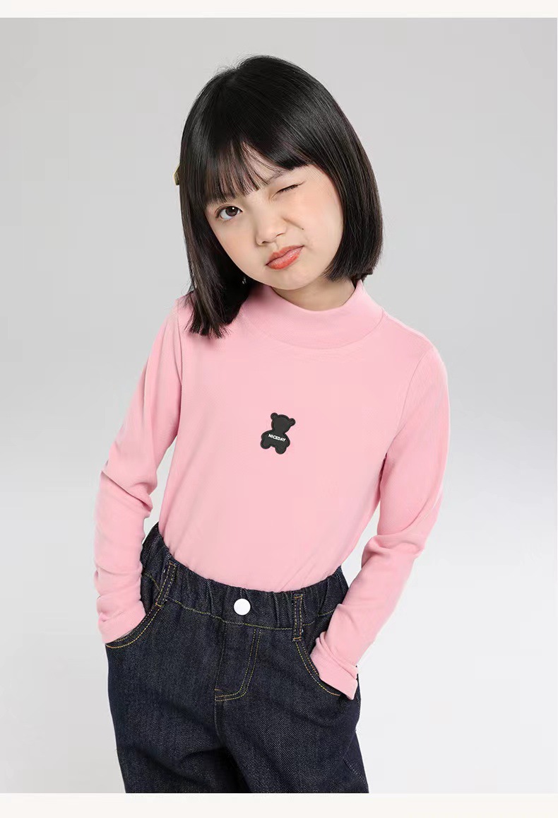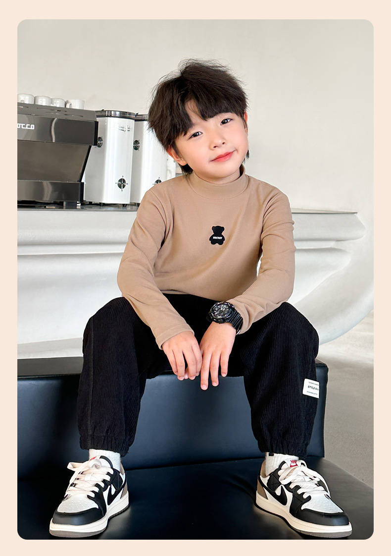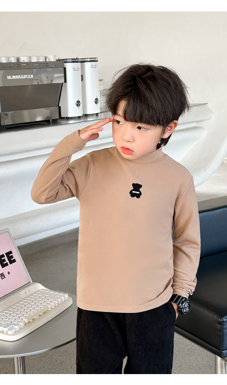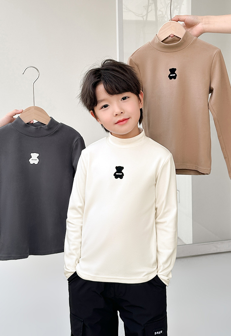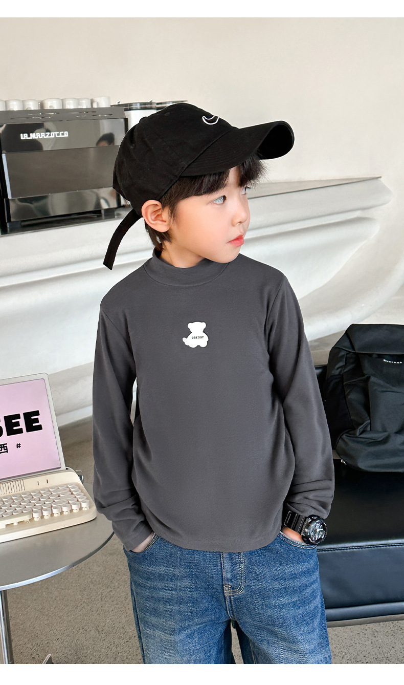 [7A 항균] AINI 어린이 높은 목 긴 소매 티셔츠 곰 인쇄베이스 어린이 봄과 가을스토어 가기