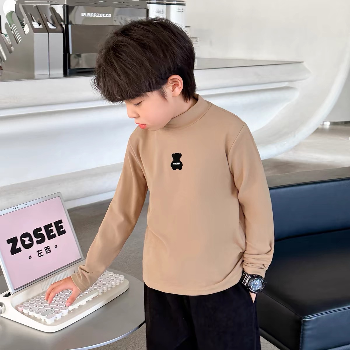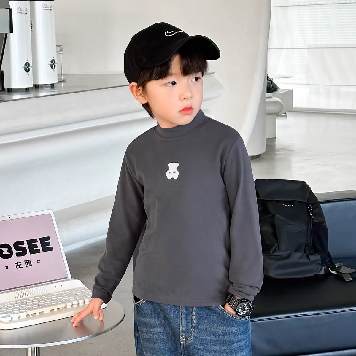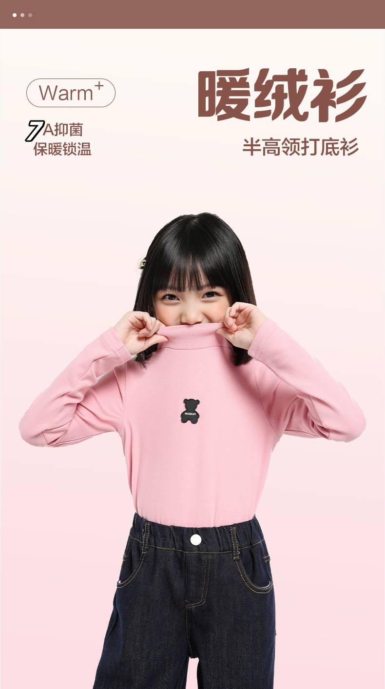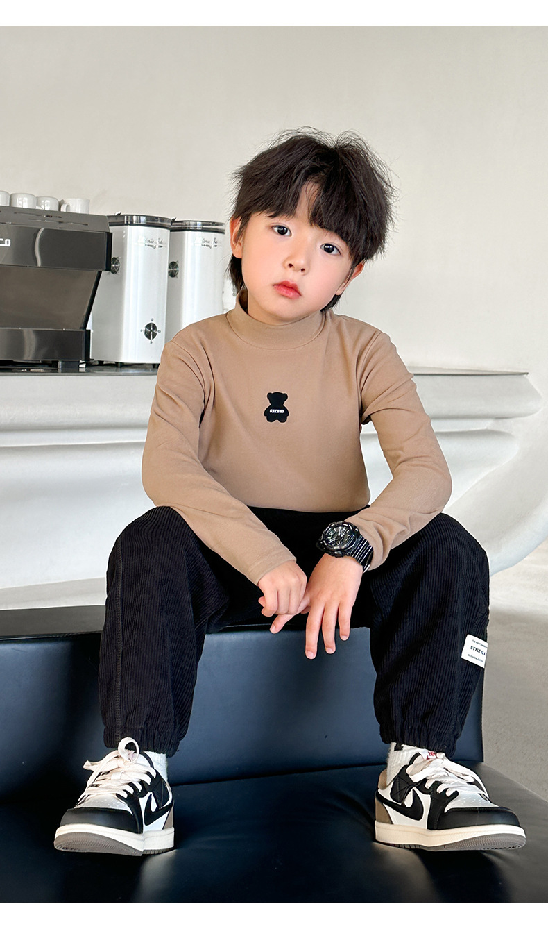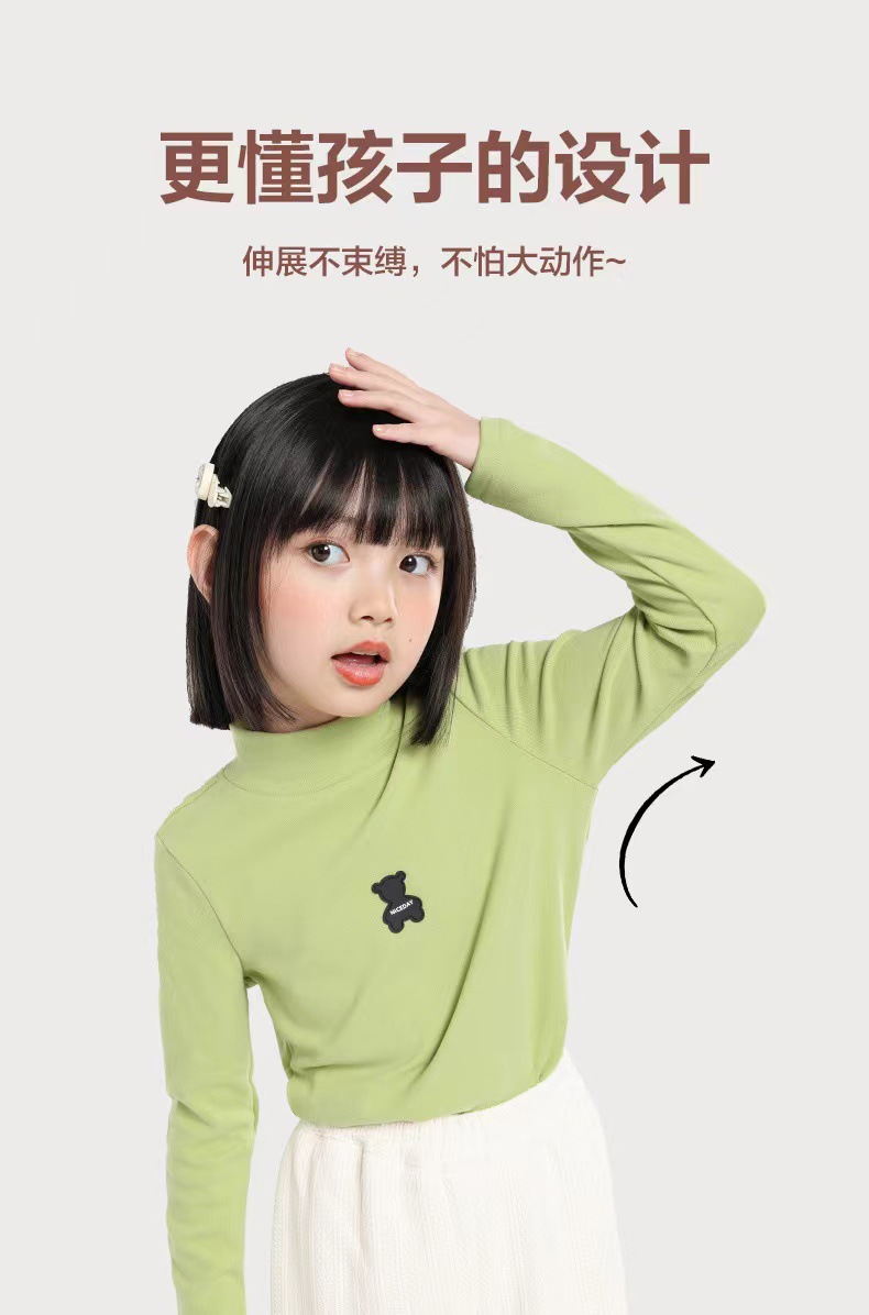 [7A 항균] AINI 어린이 높은 목 긴 소매 티셔츠 곰 인쇄베이스 어린이 봄과 가을스토어 가기