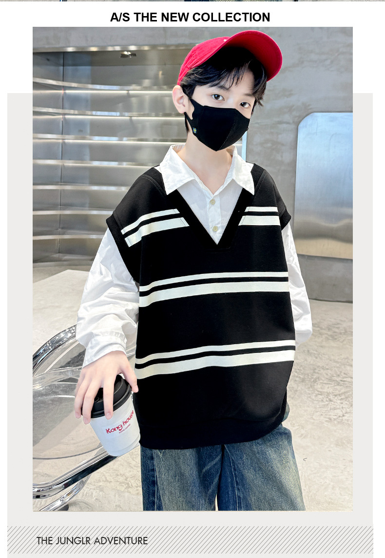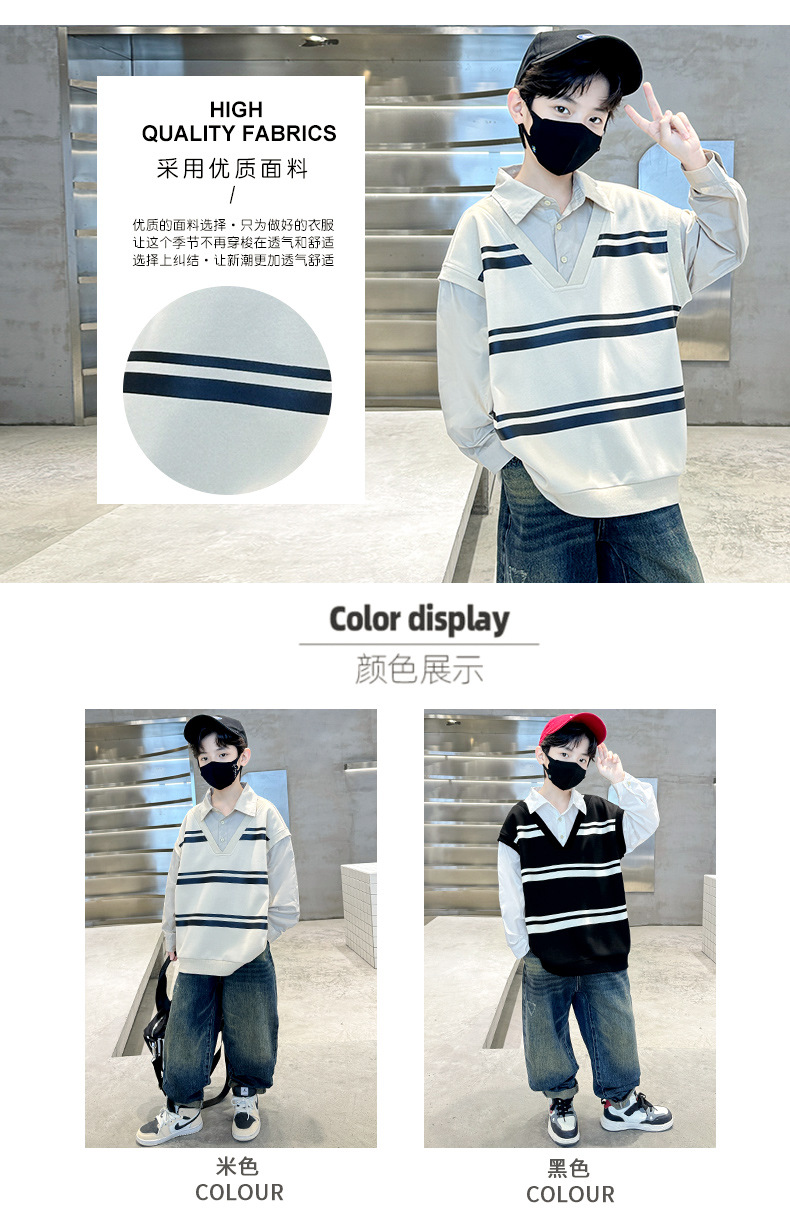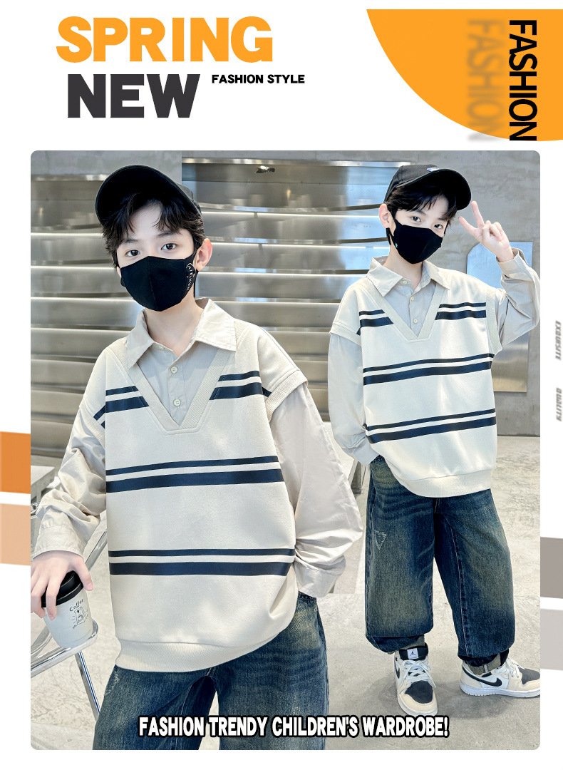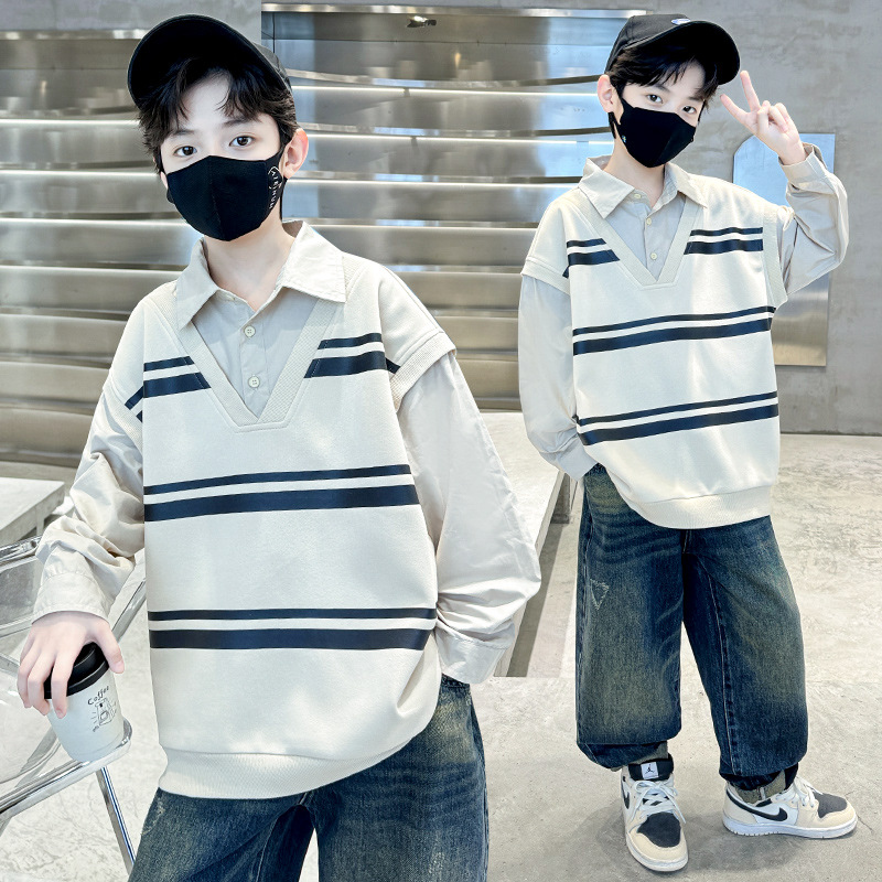 남자들의 봄과 가을 2024 새로운 어린이 가을 긴 소매 폴로 셔츠 큰 어린이 셔츠 칼라 캐주얼 핸섬
