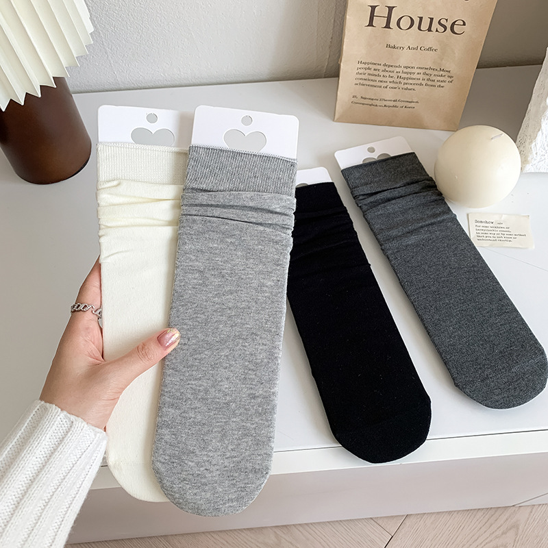 솔리드 컬러 심플 양말 여성용 스타킹 양말 화이트 그레이 중간 길이 양말 가을 올 매치 한국식 면 양말