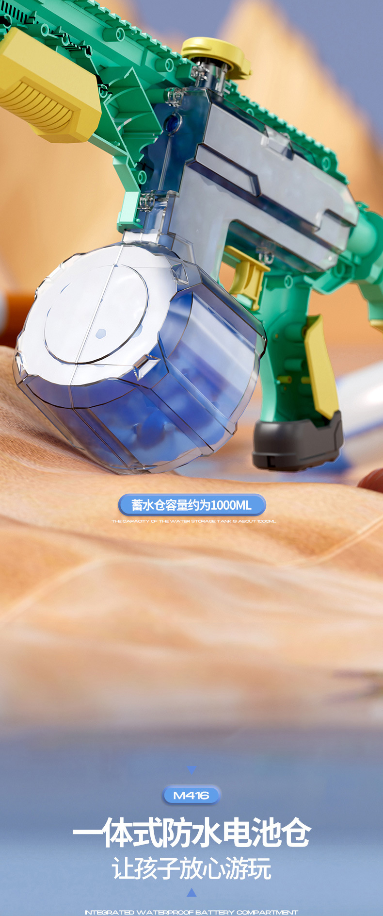 • 청록색 자흡수/수동자동 M416 전동물총 [KB3342 전자상거래 박스]