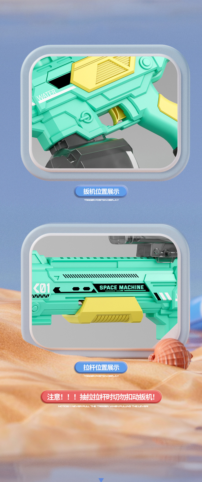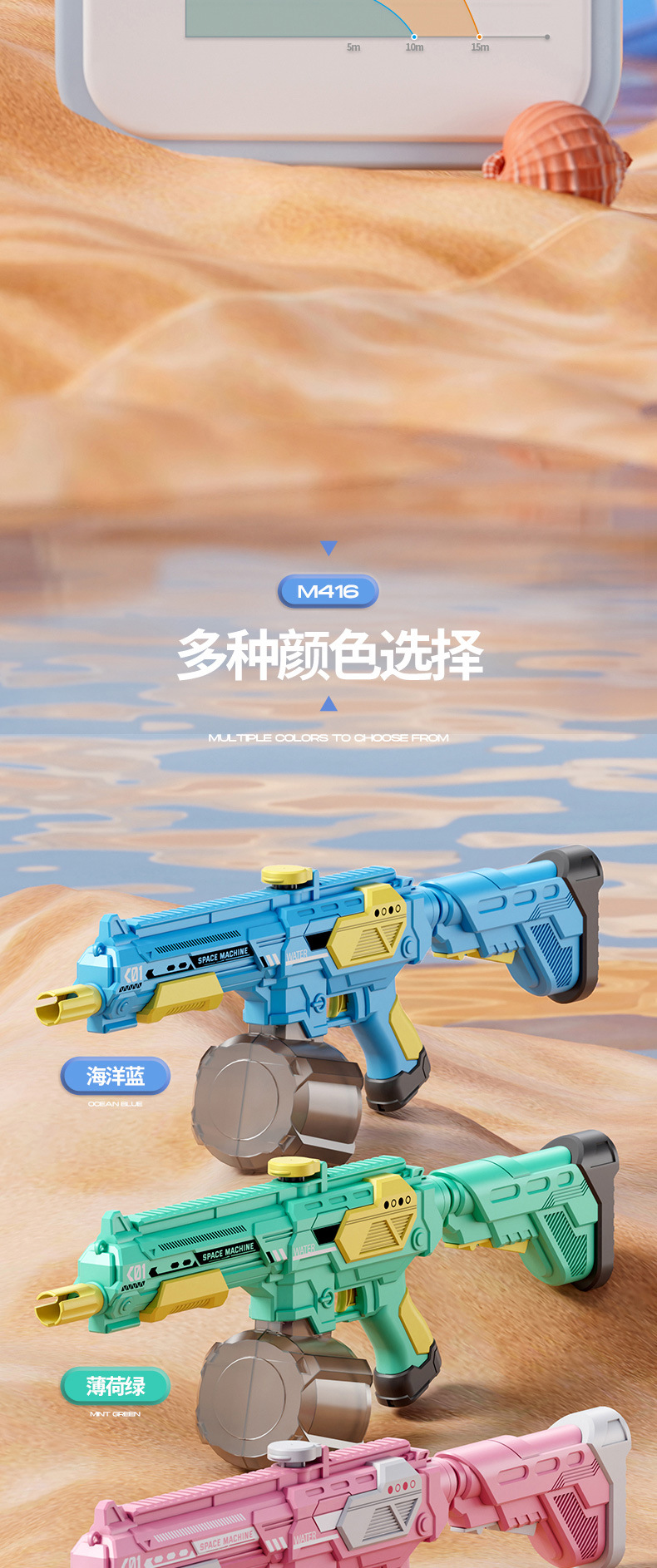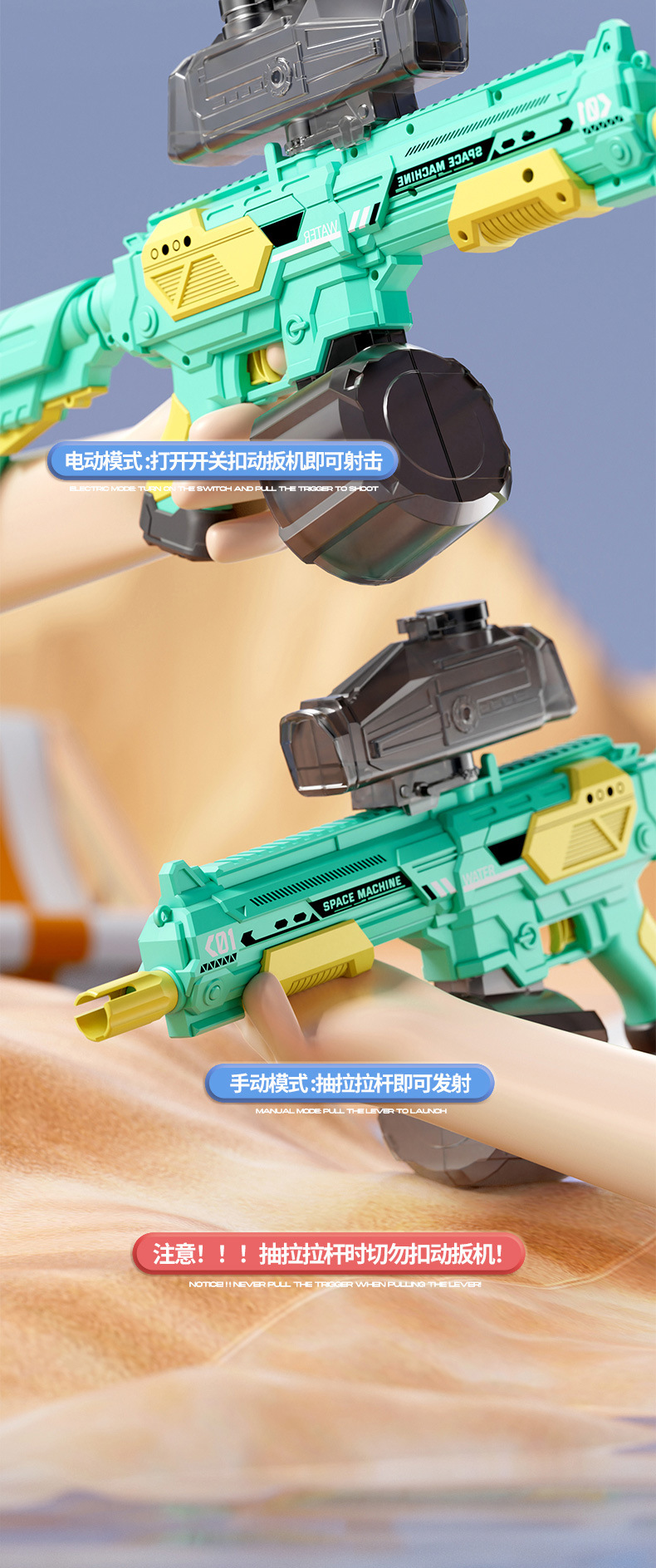 • 고급 돋보기 버전 청록색 수동-자동 M416 전기 물총 [KB3338 전자상거래 상자]