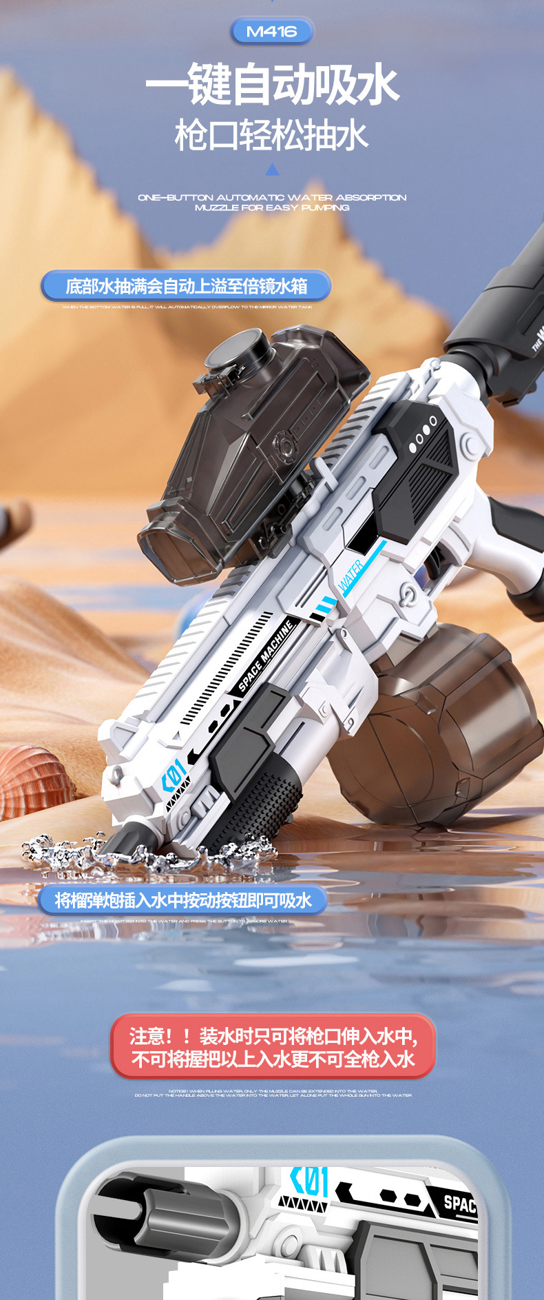 국경 간 기술 조수 놀이 m416 물총 전기 자동 물 흡수 추구 자체 포함 된 발광 물 총 물 놀이 장난감스토어 가기