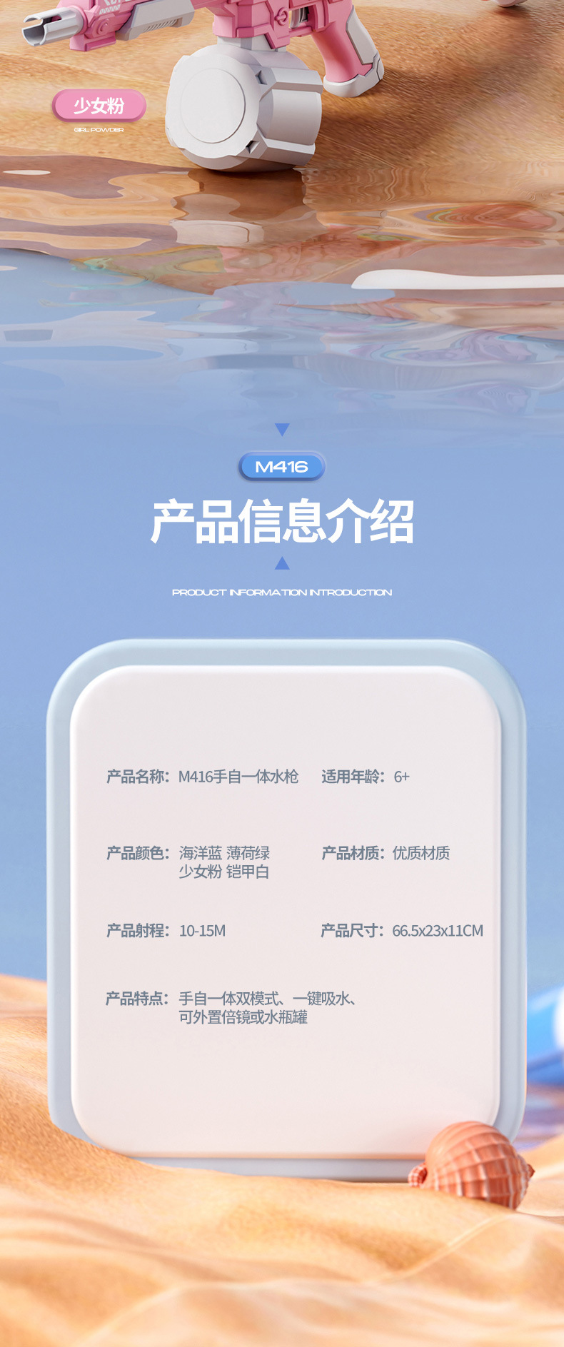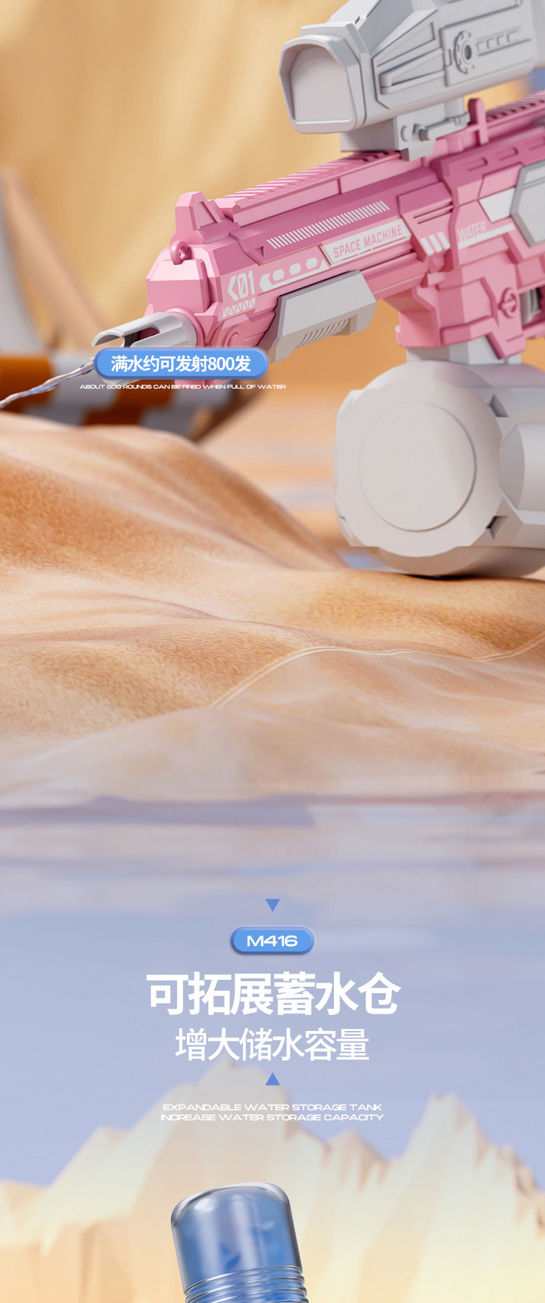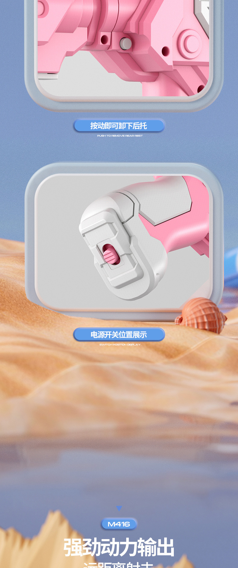 • 고급 돋보기 버전 핑크 수동-자동 M416 전기 물총 [KB3338 전자상거래 상자]
