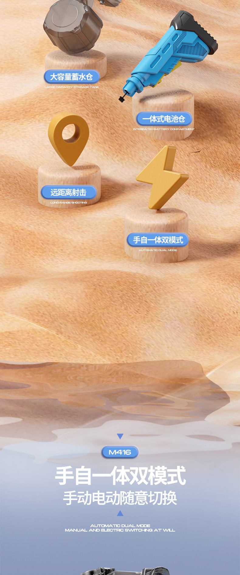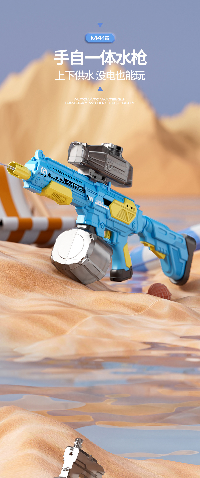 • 고급 돋보기 버전 파란색 수동 자동 M416 전기 물총 [KB3338 전자상거래 상자]