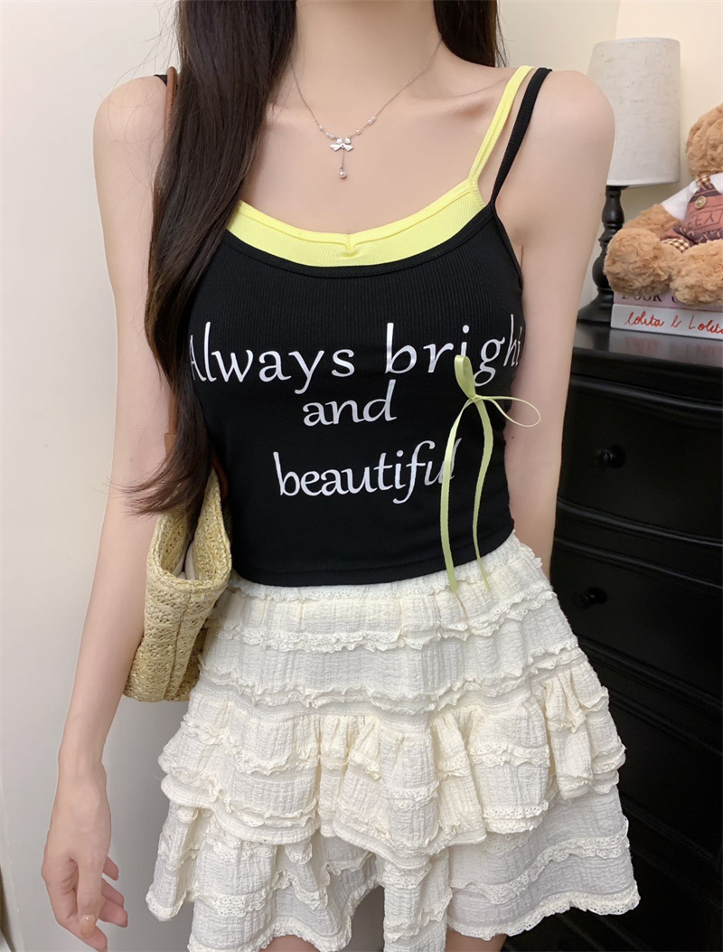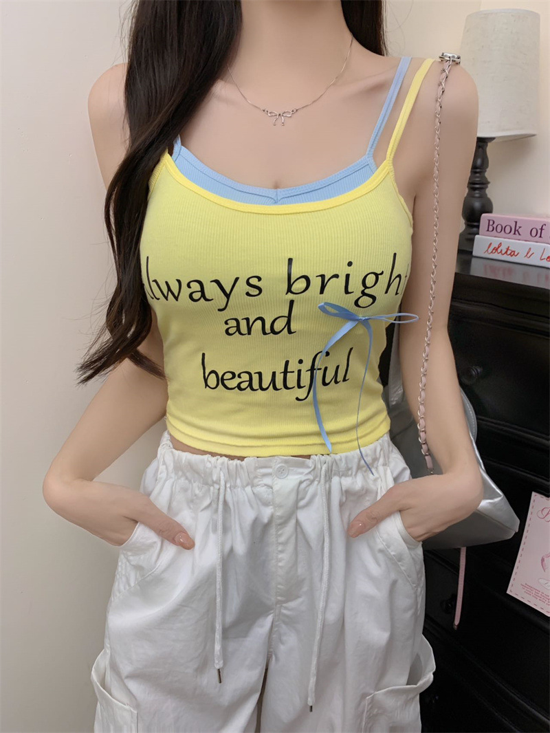 753 # 레이온 가짜 투피스 캐미솔 여성의 여름 새로운 아름다운 뒷면 겉옷 슬림 슬림베이스 코트스토어 가기