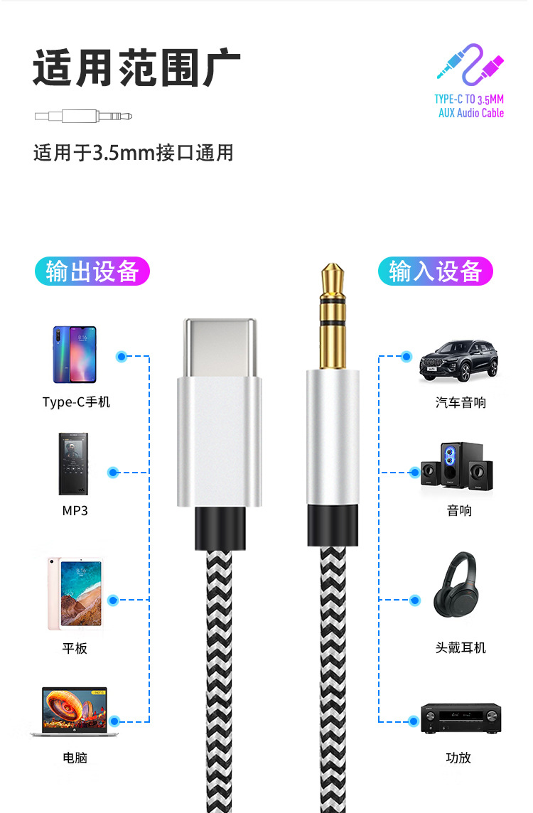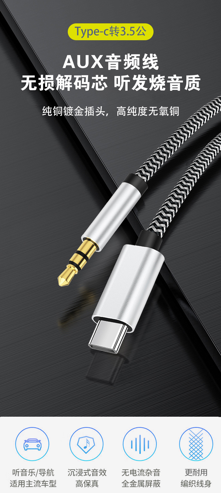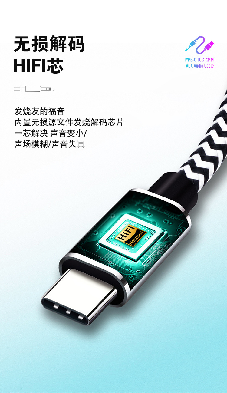 Typec ~ 3.5 디지털 오디오 케이블 AUX Apple Huawei 오디오 편조 케이블에 적합 자동차 스피커 어댑터 케이블스토어 가기