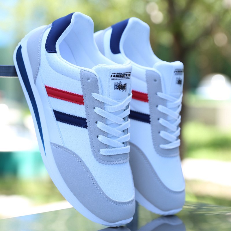 남성 신발 2024 새로운 한국 스타일 유행 운동화 방수 가죽 캐주얼 운동화 남성 학생을위한 경량 달리기 트렌디 신발스토어 가기