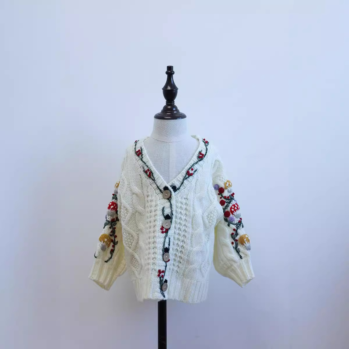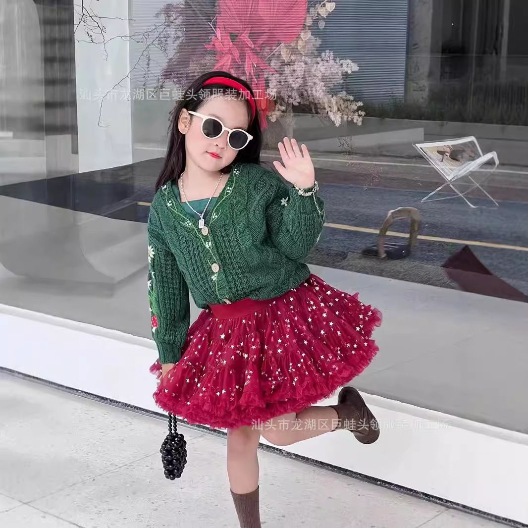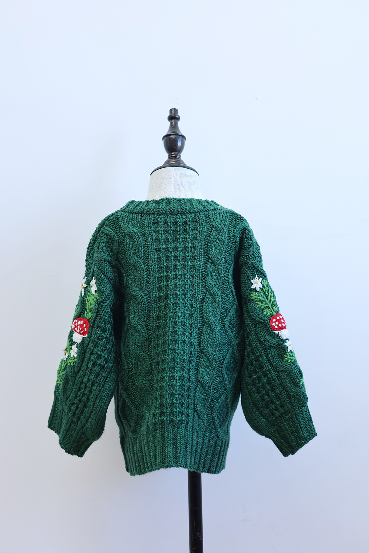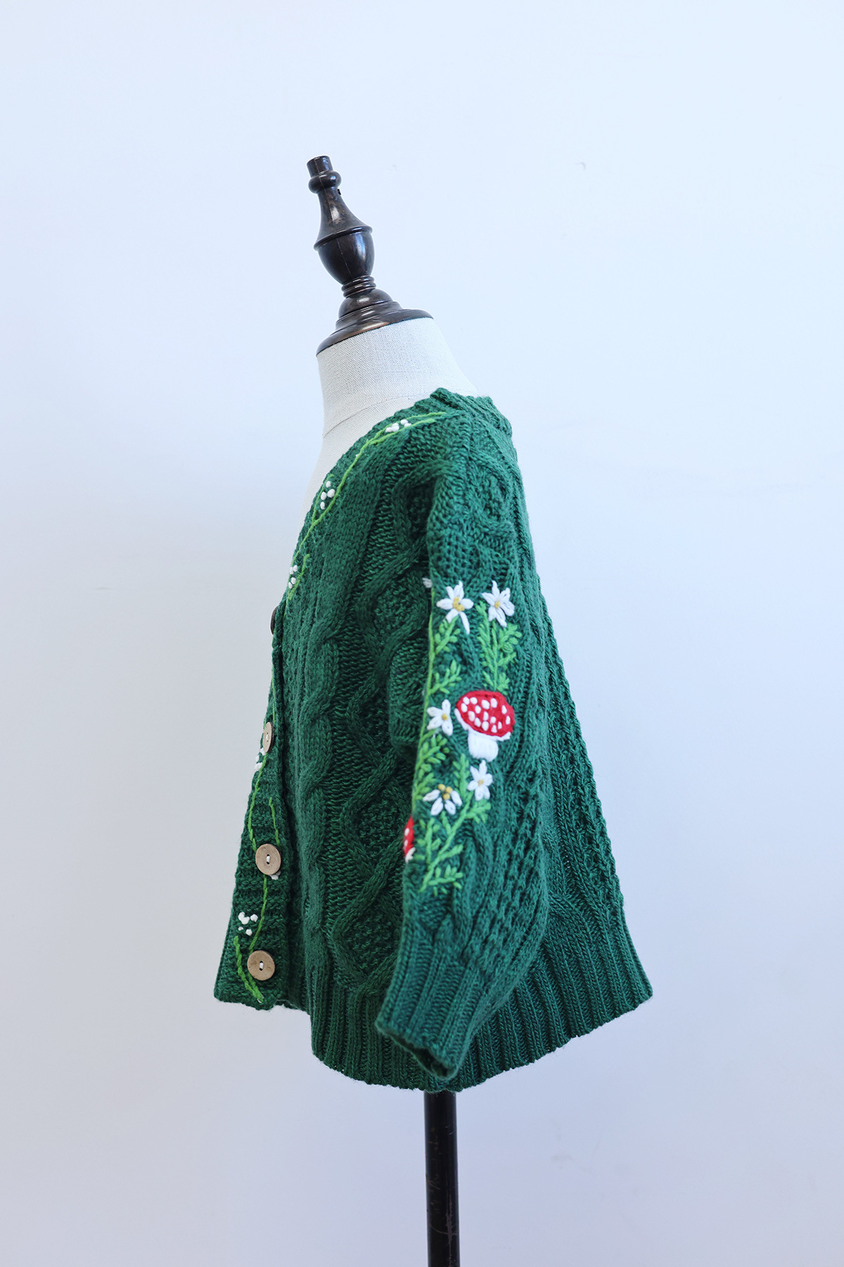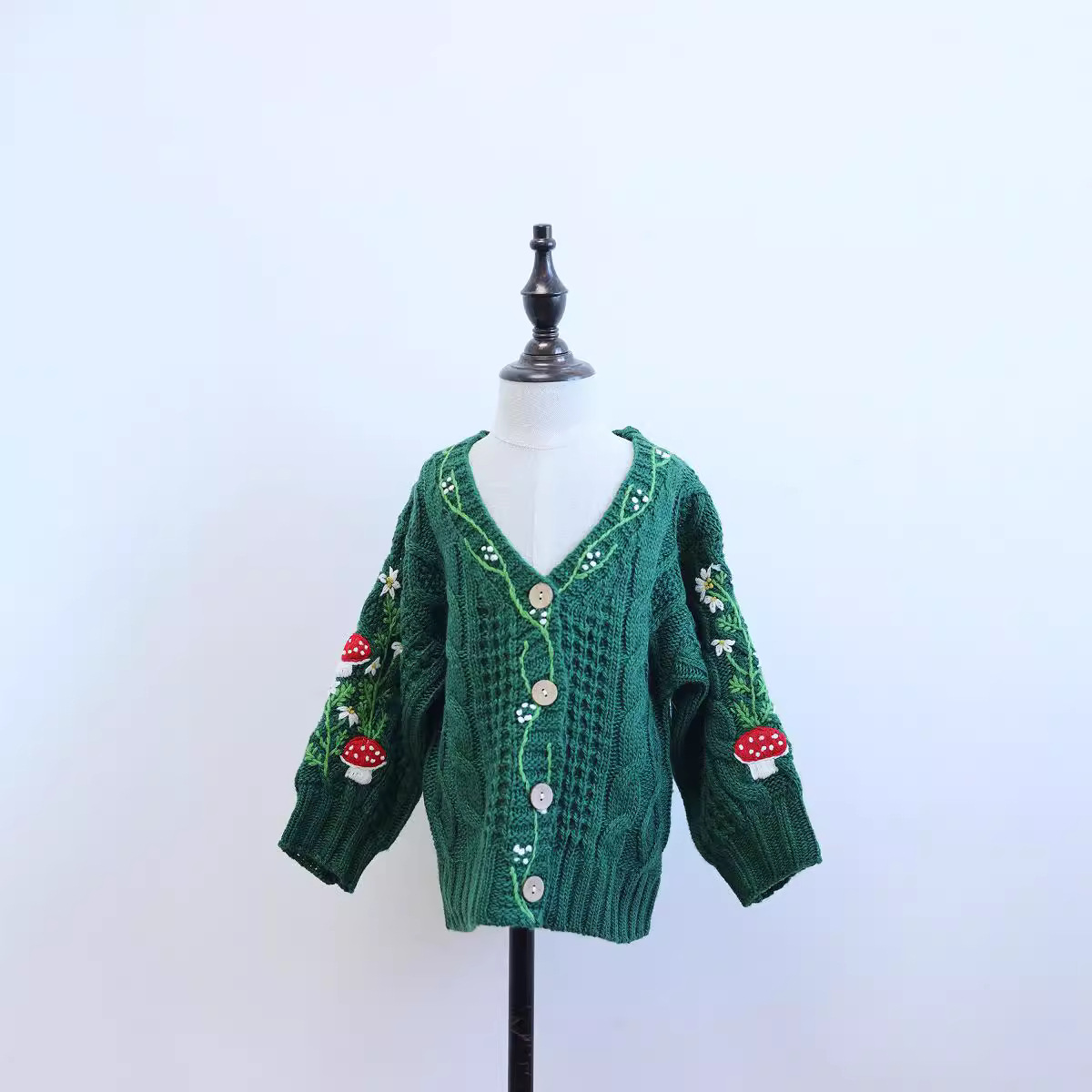 가을과 겨울 새 여자 아기 올매치 수제 버섯 꽃 니트 카디건 그린 화이트 캐주얼 하이 엔드스토어 가기