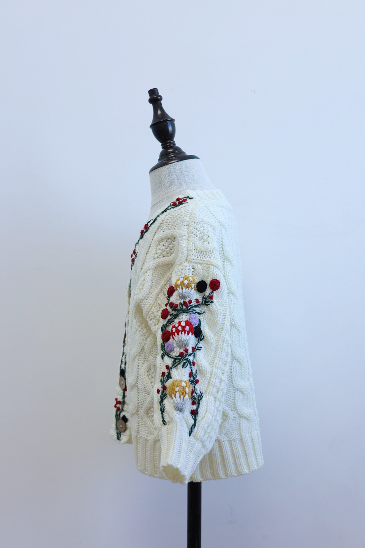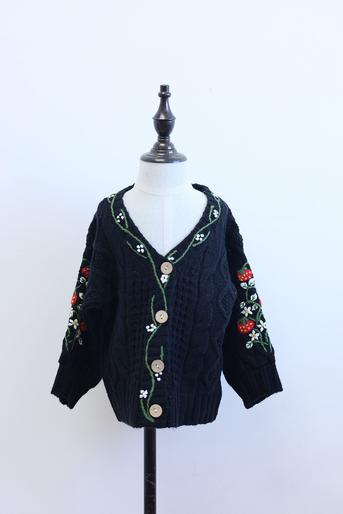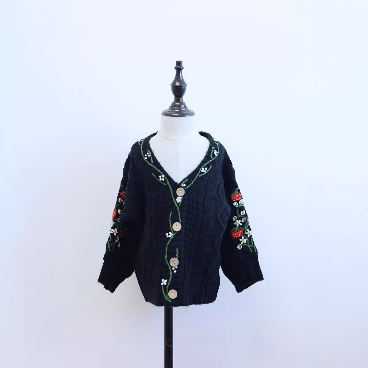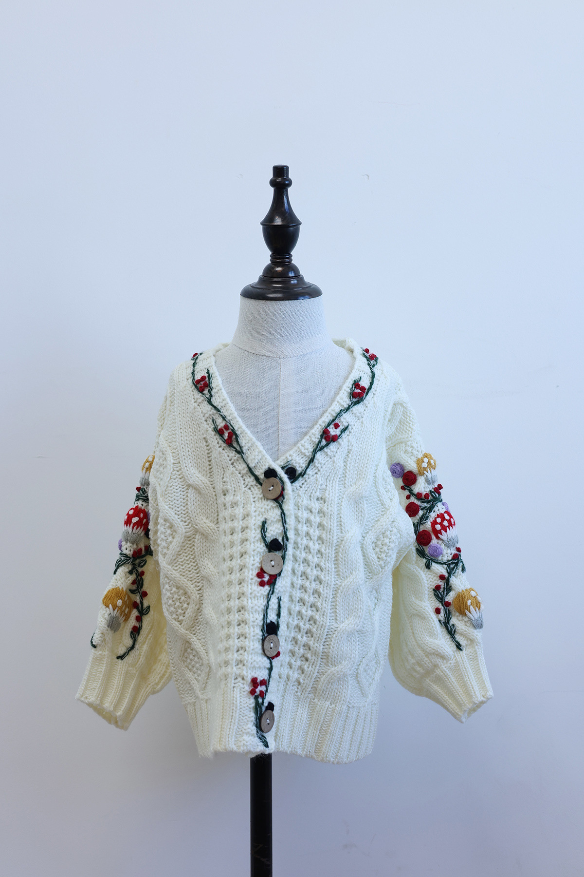가을과 겨울 새 여자 아기 올매치 수제 버섯 꽃 니트 카디건 그린 화이트 캐주얼 하이 엔드스토어 가기