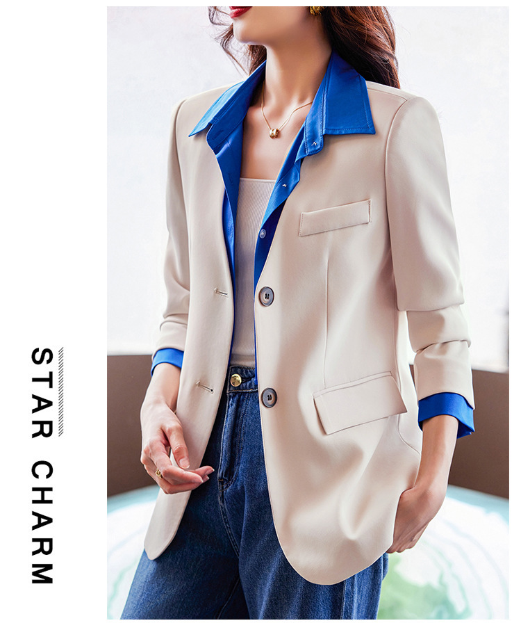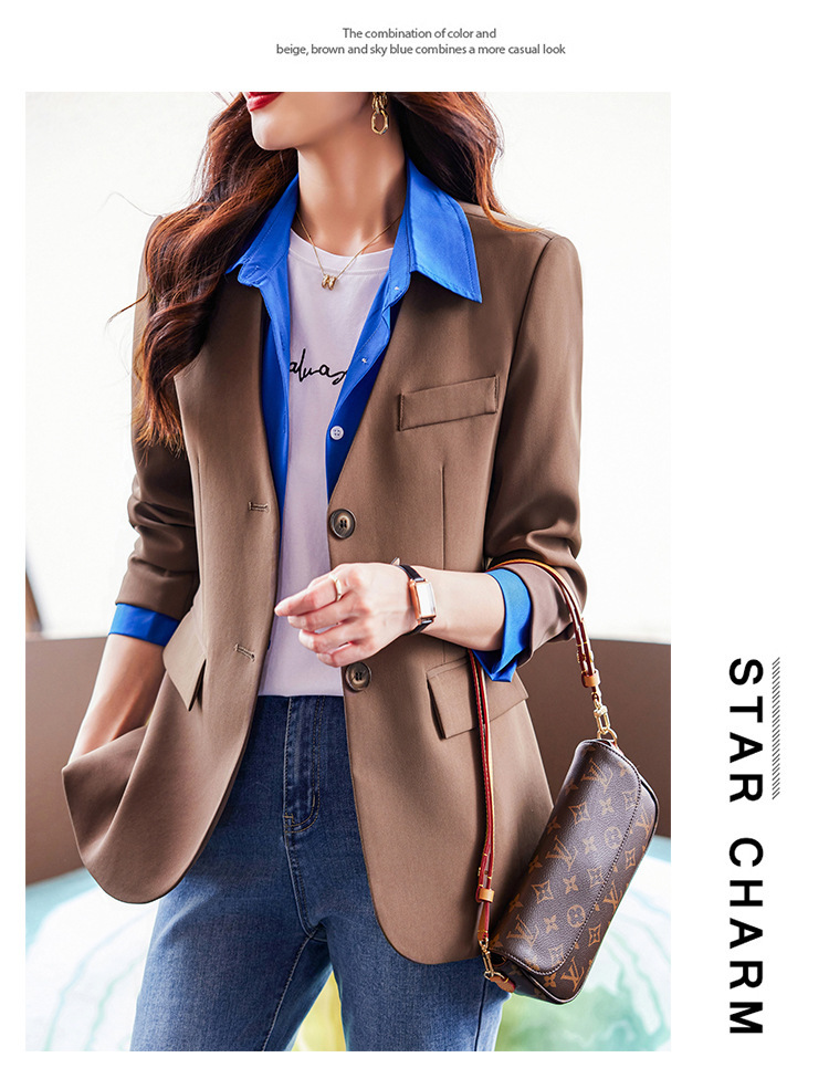 플러스 사이즈 통근 살구색 작은 세트 재킷 2024 봄과 가을 새로운 트렌드 기질 레저 조커 작은 세트 재킷스토어 가기
