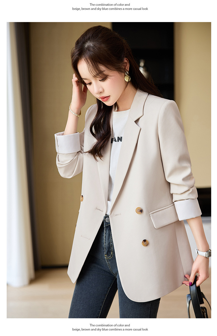 플러스 사이즈 통근 살구색 작은 세트 재킷 2024 봄과 가을 새로운 트렌드 기질 레저 조커 작은 세트 재킷