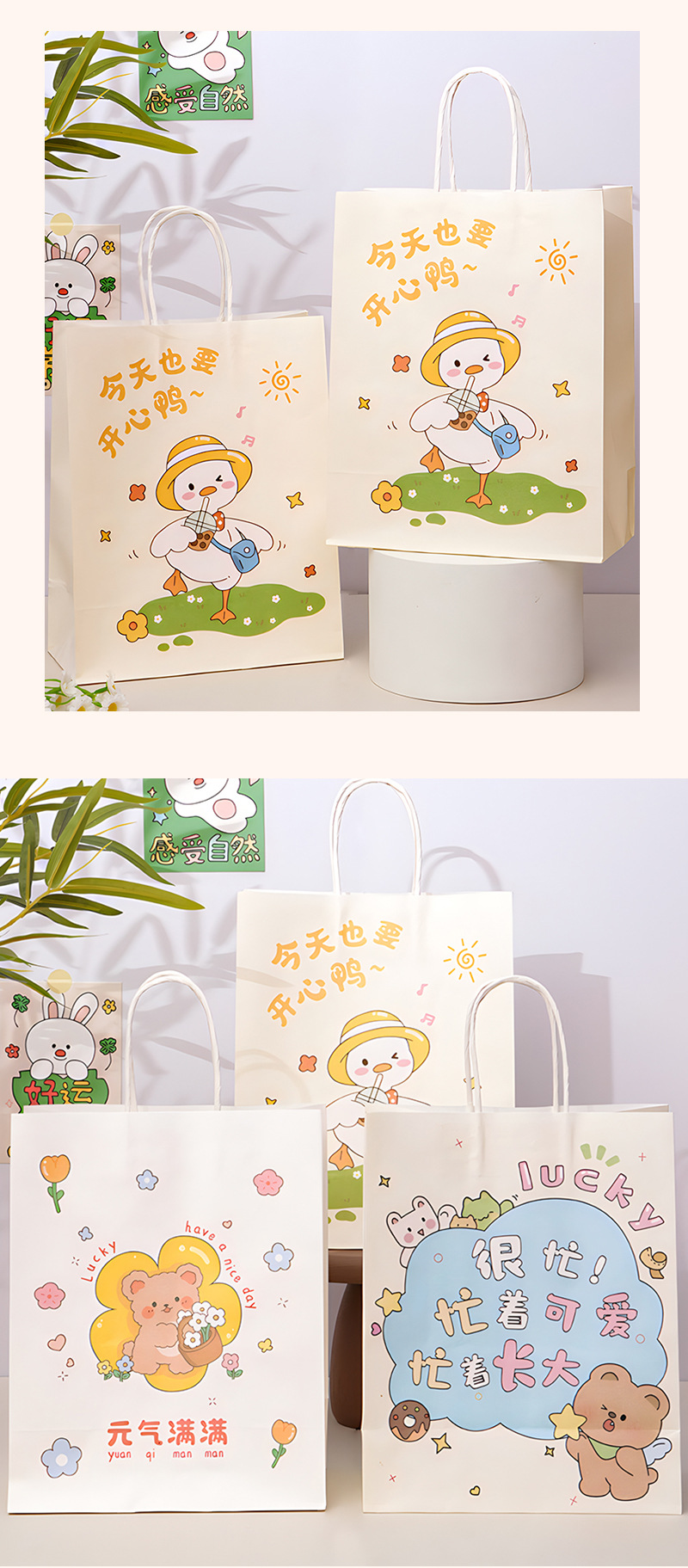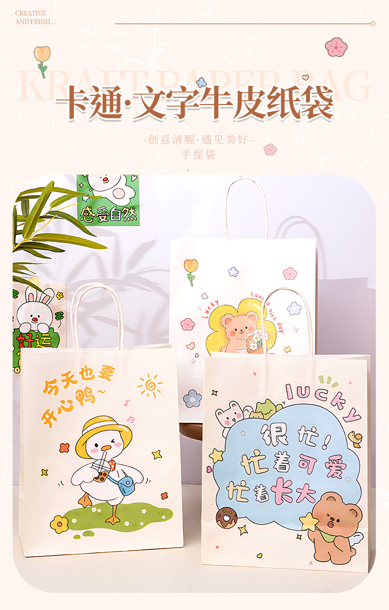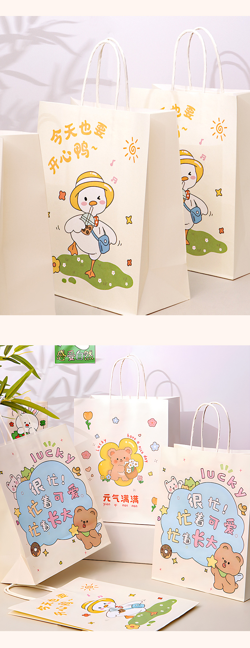 새로운 귀여운 만화 크래프트 종이 가방 선물 가방 생일 선물 가방 선물 가방 높은 감각 창조적 인 핸드백스토어 가기