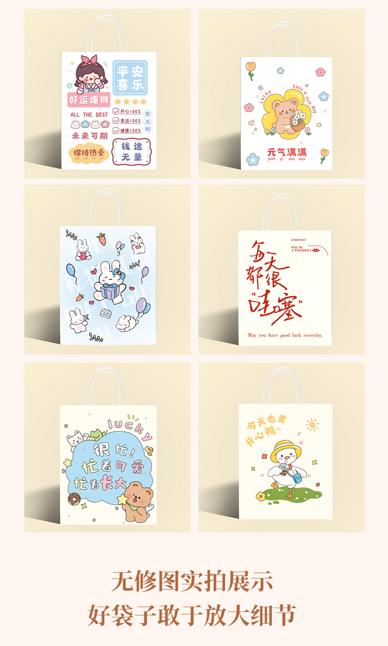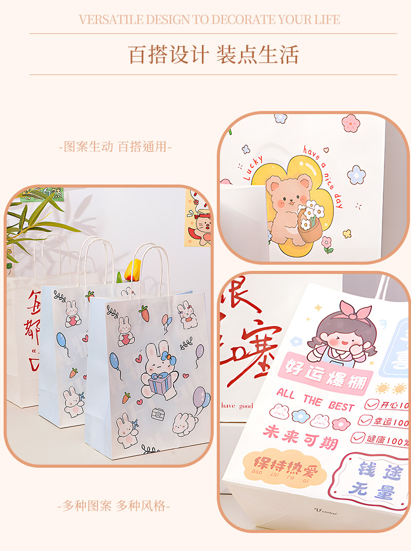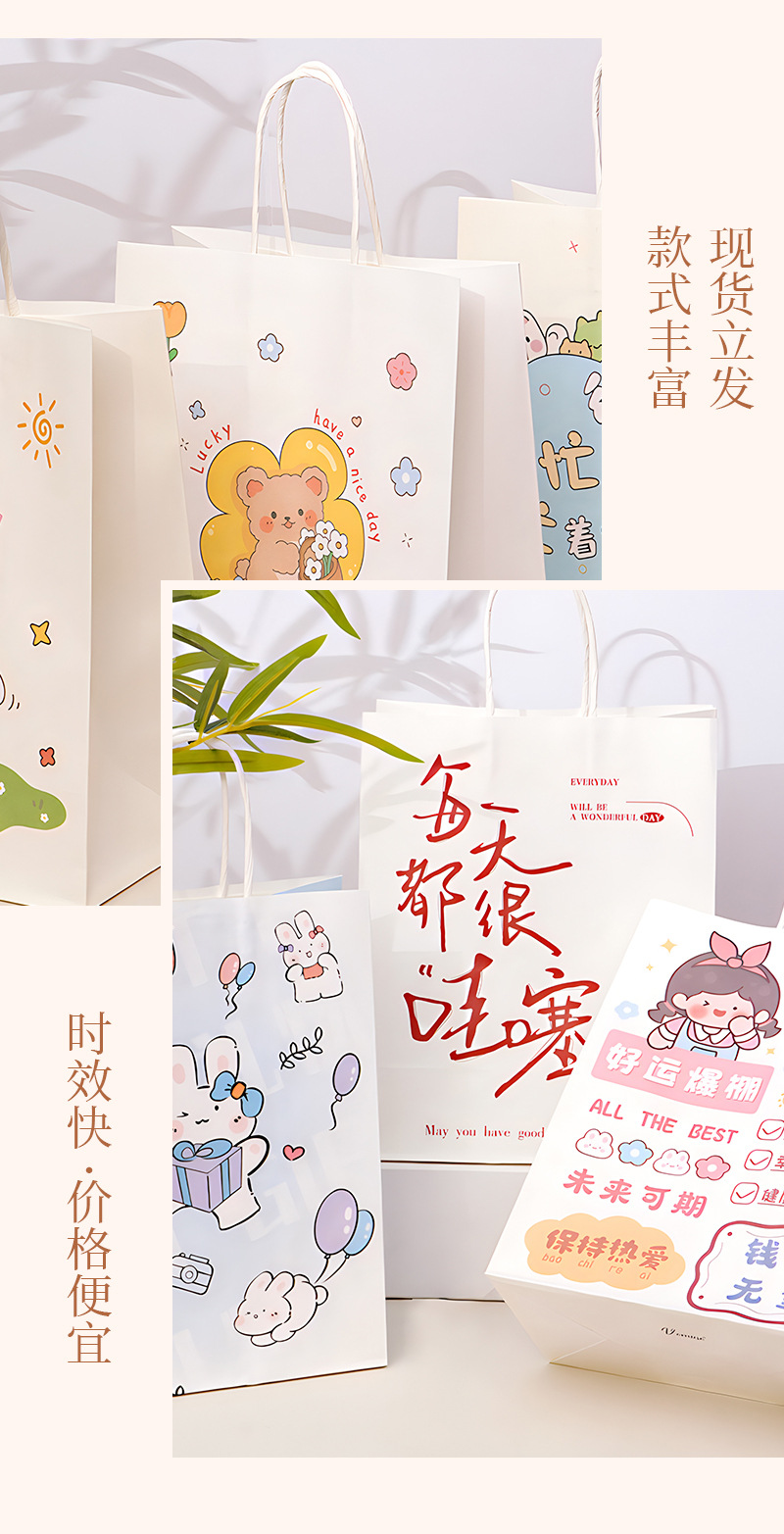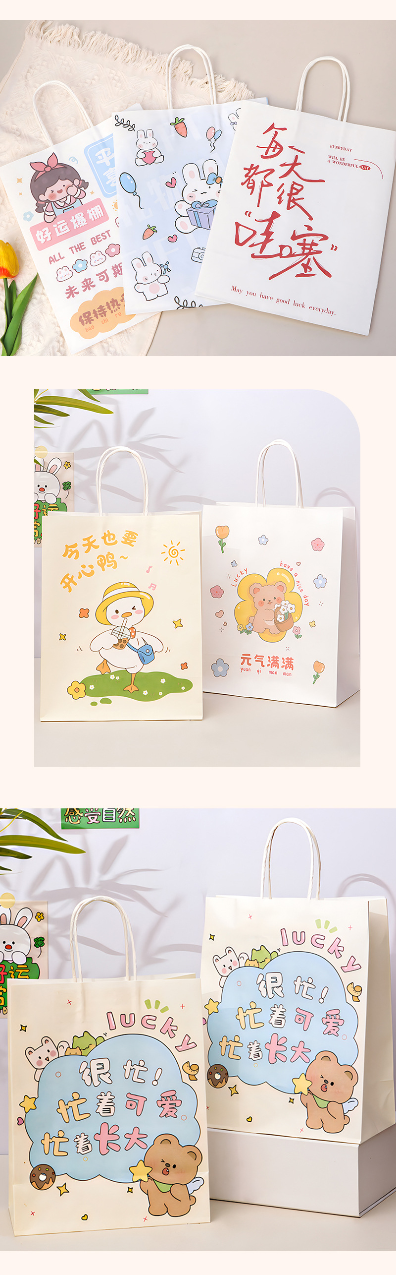 새로운 귀여운 만화 크래프트 종이 가방 선물 가방 생일 선물 가방 선물 가방 높은 감각 창조적 인 핸드백스토어 가기