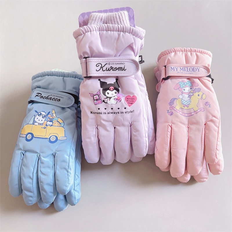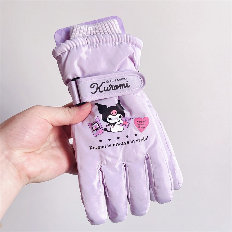 정품 Sanrio Kulomi 어린이 스키 장갑 겨울 눈 따뜻한 두꺼운 면 안티 동결 물 튀는 소년 소녀스토어 가기
