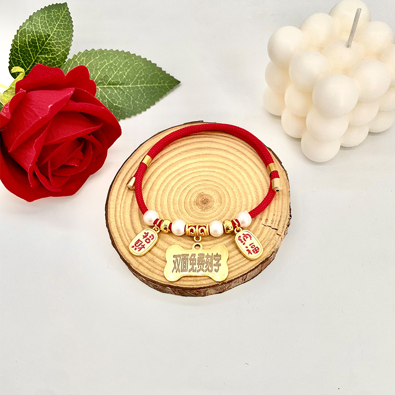 • 레드 로프 진주 럭키 목걸이 [골든 본메달]