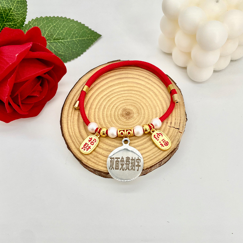 • 레드 로프 진주 럭키 목걸이 [실버 메달]