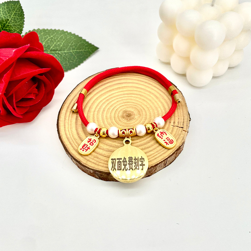 • 레드 로프 진주 럭키 목걸이 [골든 메달]
