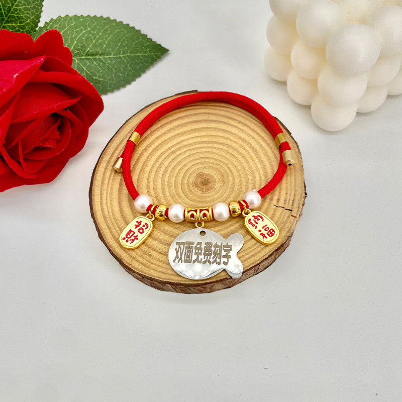 • 레드 로프 진주 럭키 목걸이 [실버 피쉬 브랜드]