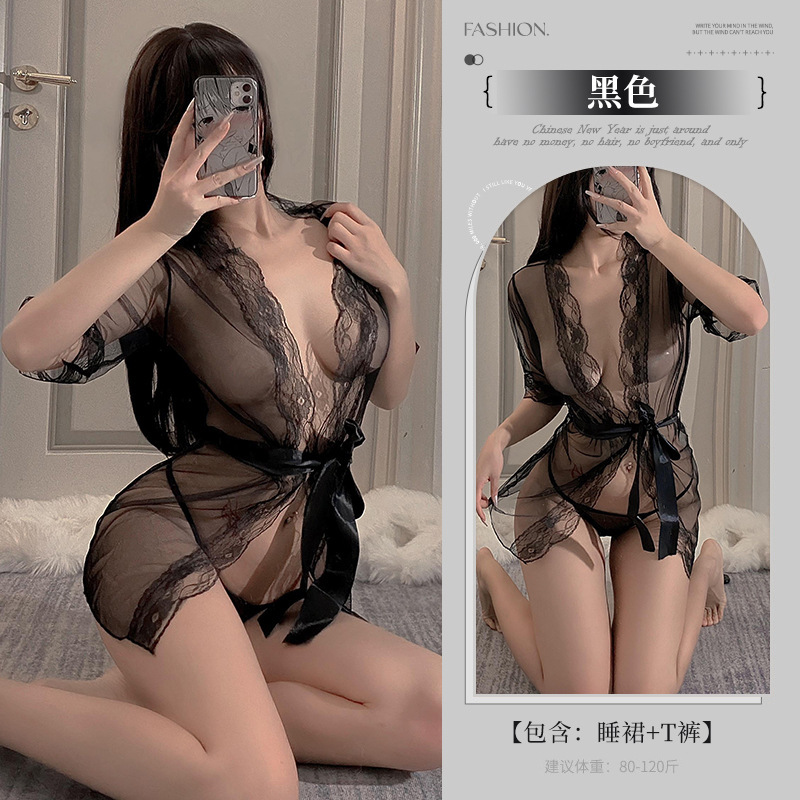 Lin Lin Ting 섹시한 속옷 여성 플러스 사이즈 섹시한 잠옷 순수한 욕망 관점 열정 유혹 작은 가슴 확대 세트 8011스토어 가기