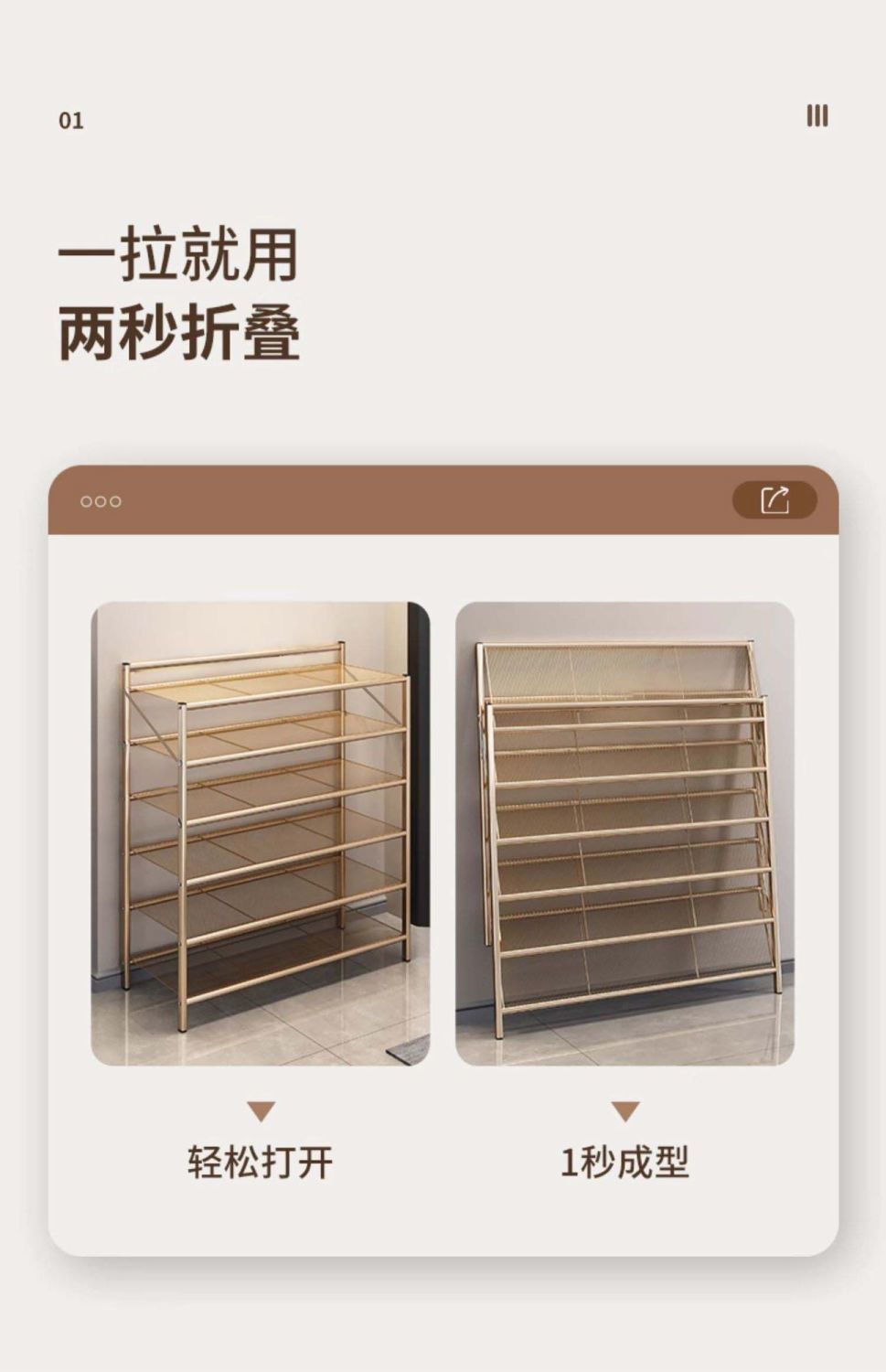 설치가 필요 없는 접이식 철제 신발장, 가정용 현관 다층 접이식 선반, 간편 신발장, 기숙사용 금속 수납 선반스토어 가기