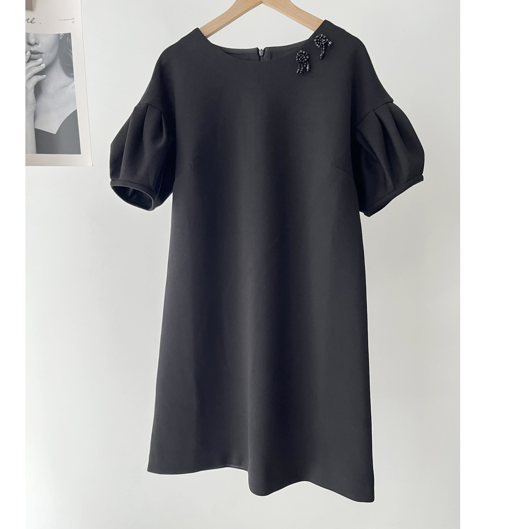 재고 라이트 럭셔리 이른 가을 새로운 여성 의류 프랑스 우아한 거품 소매 스트레이트 블랙 짧은 풀오버 원피스스토어 가기