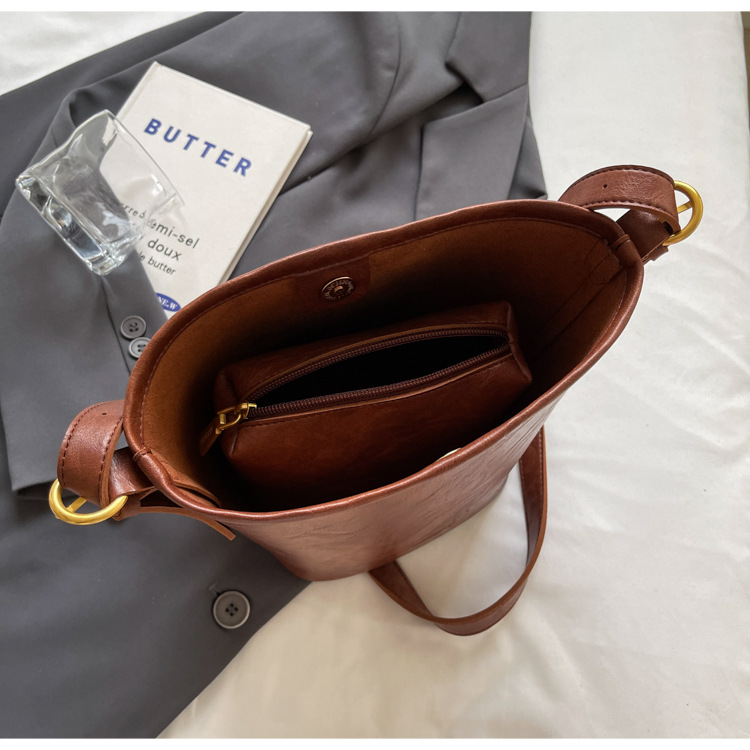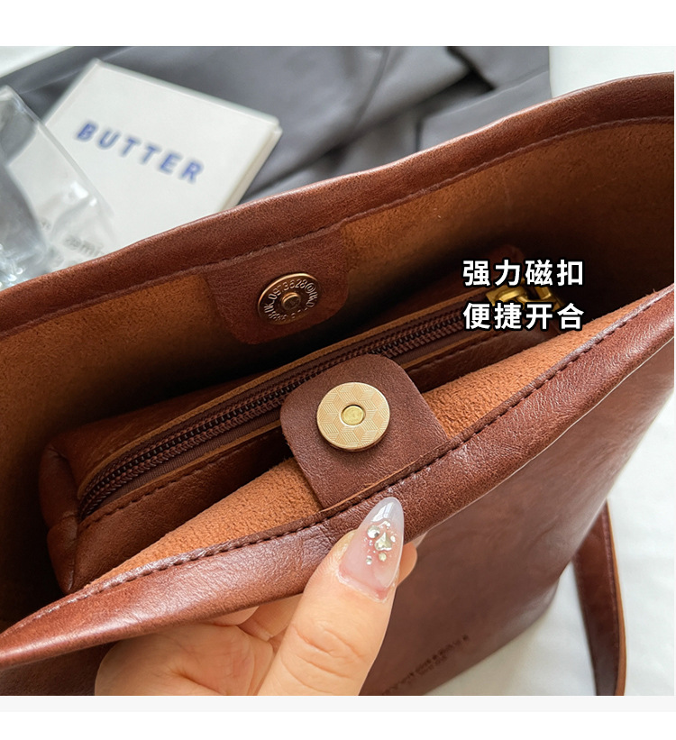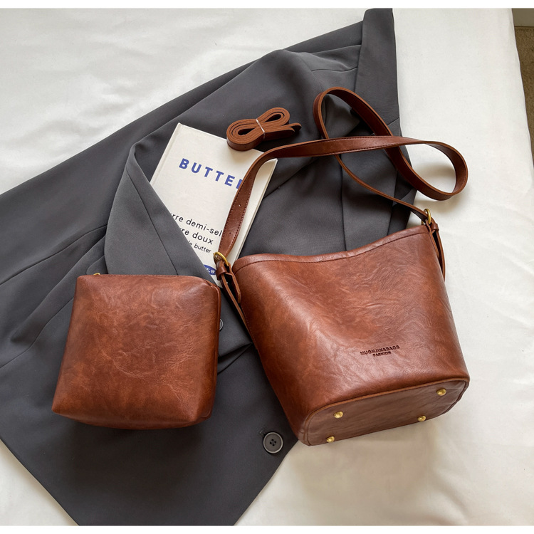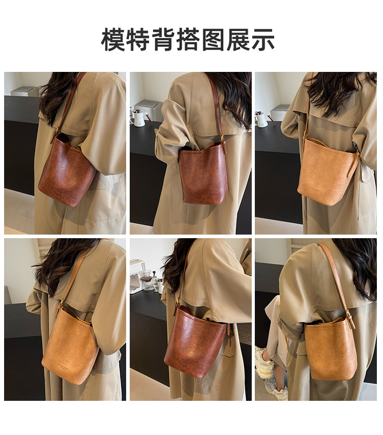 하이 엔드 스타일 텍스처 레트로 작은 가방 여성 가방 올 매치 2024 새로운 패션 크로스 바디 가방 폭발성 버킷 백