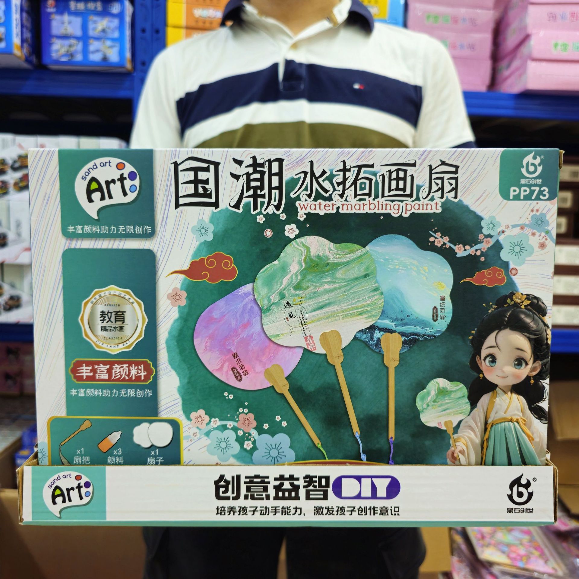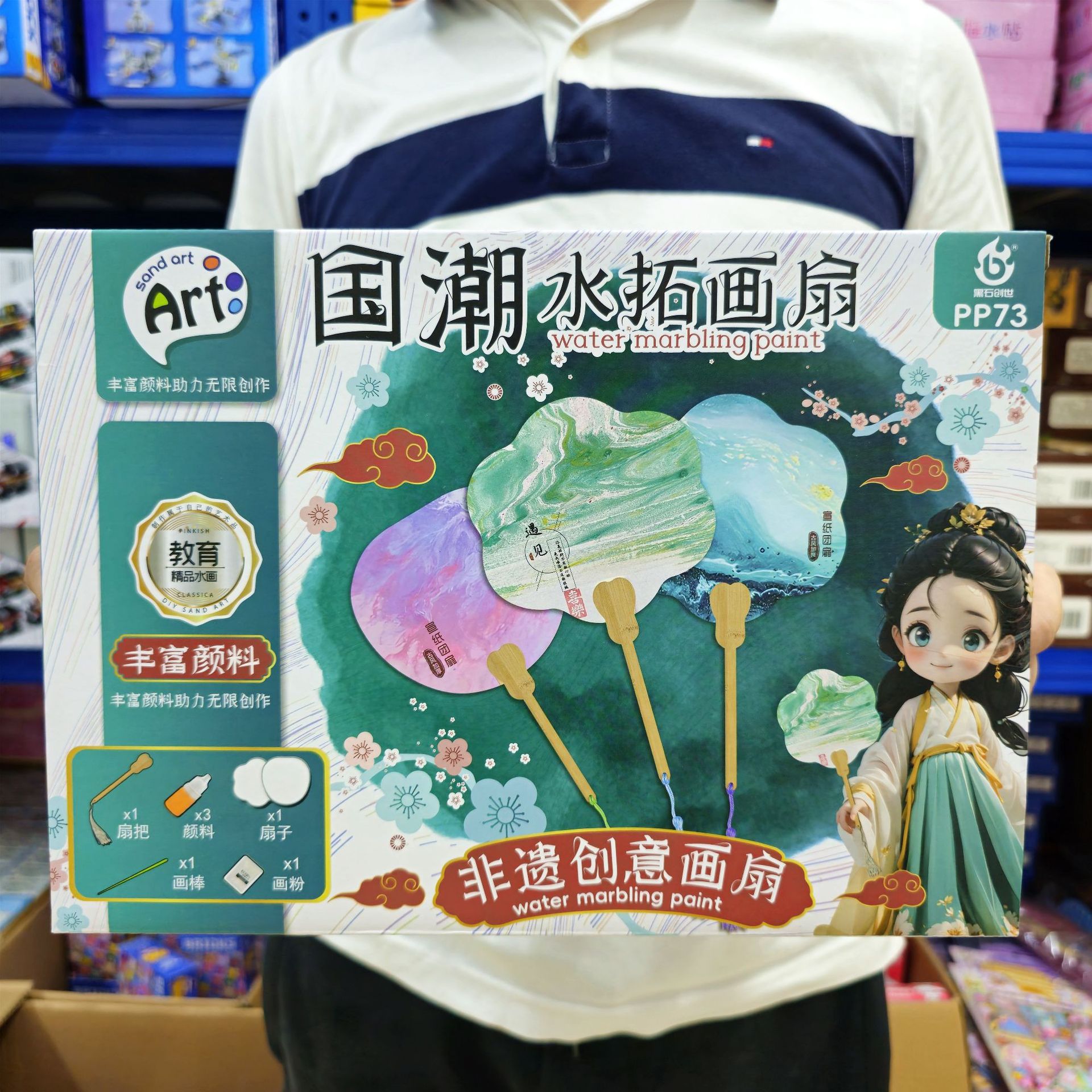 • 국차오 무형문화유산페인트 부채세트 [부채1개+색재료3개]