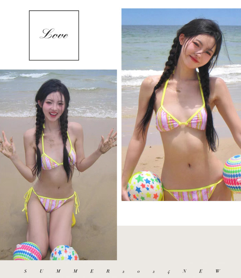한국 새로운 섹시한 스파이스 걸 작은 가슴 비키니 스트랩 걸스 해변 온천 휴가 3 점 수영복