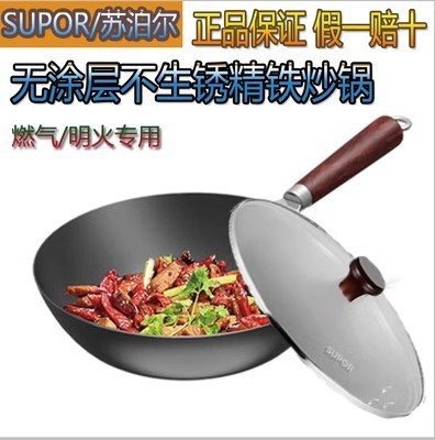 Supor VC32BH01 코팅되지 않은 철 냄비 녹지없는 가정용 구식 Wok Wok 32CM 가스 스토브스토어 가기