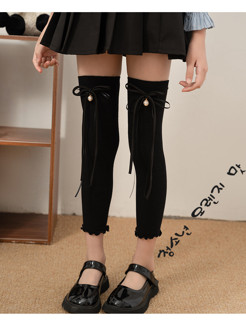 어린이 양말 화이트 리본 활 높은 스타킹 소녀 귀여운 스트랩 활 오버 더 무릎 양말 면 긴 양말