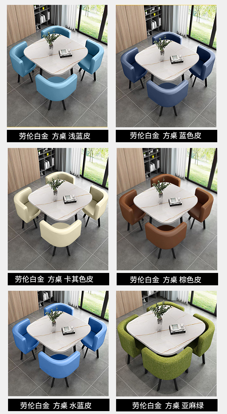 현대 리셉션 테이블과 의자 조합 판매 부서 협상 테이블 샵 리셉션 테이블과 의자 사무실 레저 작은 라운드 테이블 스퀘어 식사스토어 가기