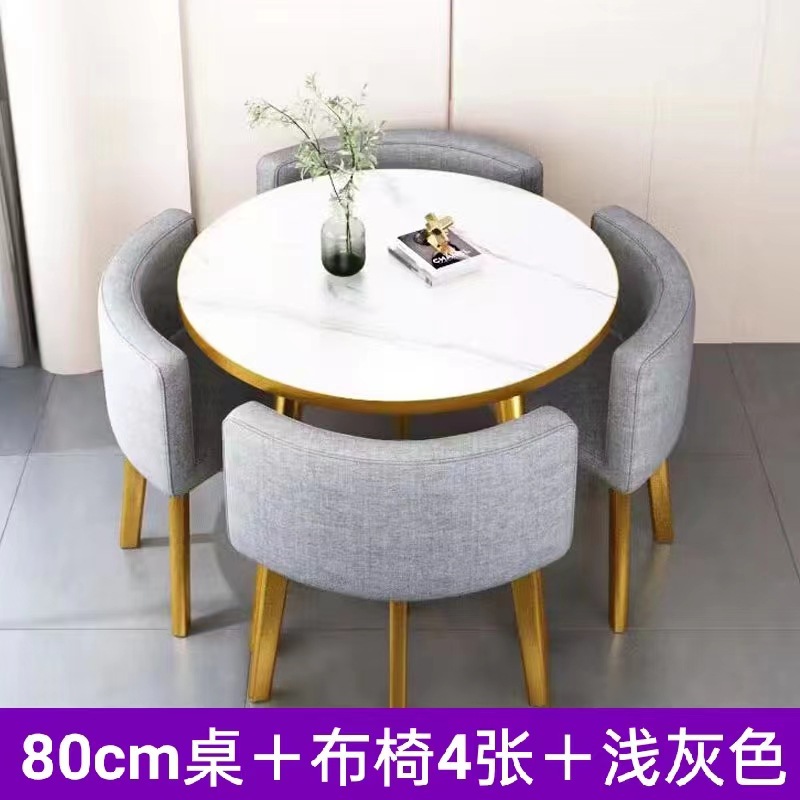 • 밝은 회색 천 80CM 모조 대리석 골드 테두리 테이블과 의자 4개
